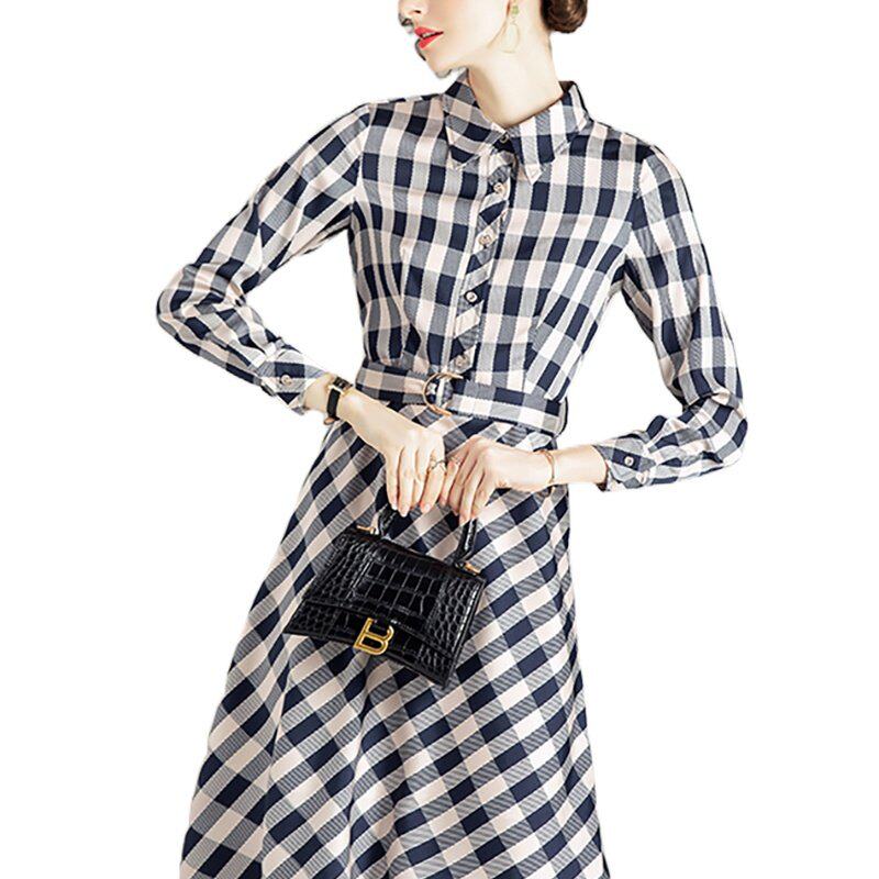 奈昕让您穿着漂亮个性化私人订制 56030复古格子连衣裙腰带女神范