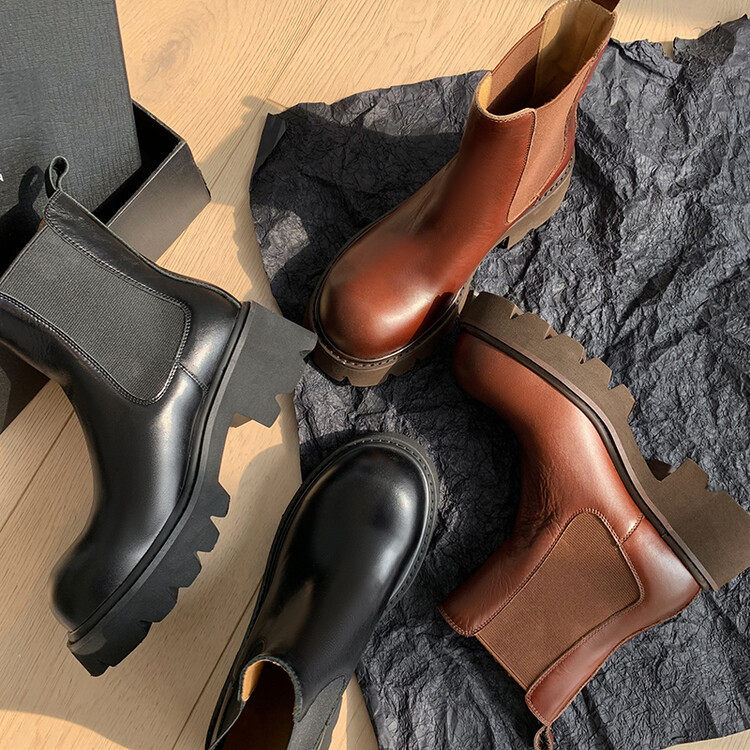 2023年新款厚底马丁靴高跟瘦瘦靴英伦风粗跟切尔西靴女松紧带短靴