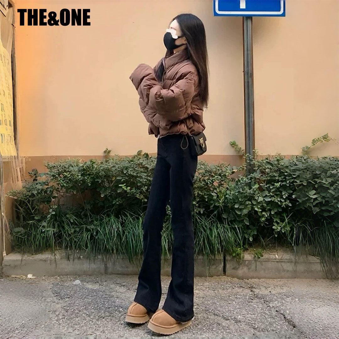 黑色微喇叭牛仔裤女2025秋冬新款加绒修身弹力显瘦小个子马蹄裤子