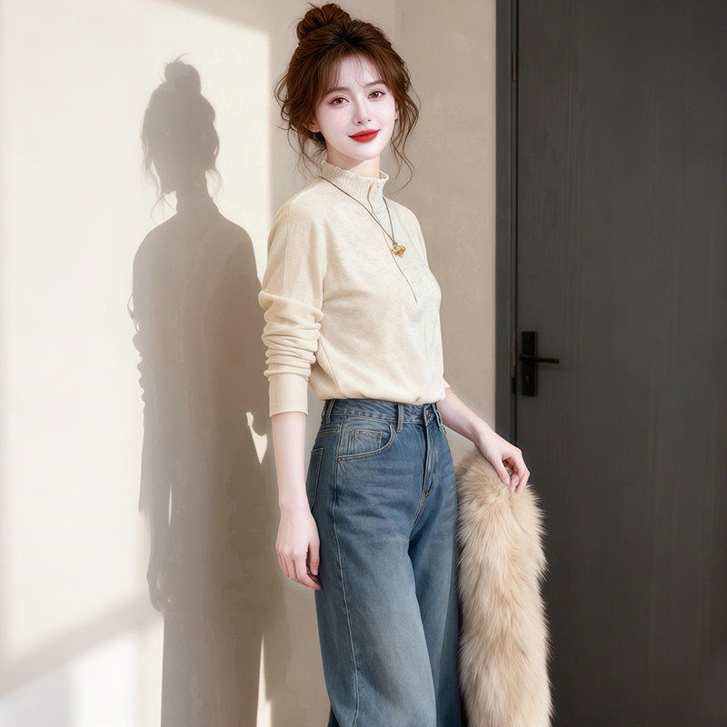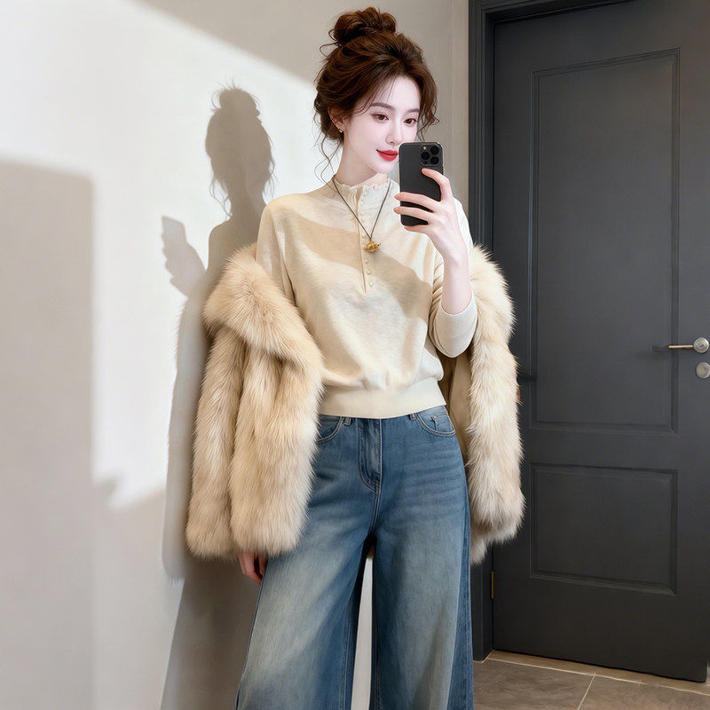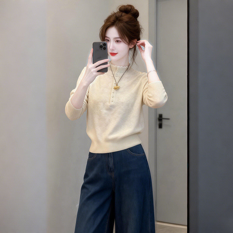 首页> 女装> 2025秋冬季加厚木耳边钉珠提花蕾丝毛针织衫宽松百搭温柔内搭上衣