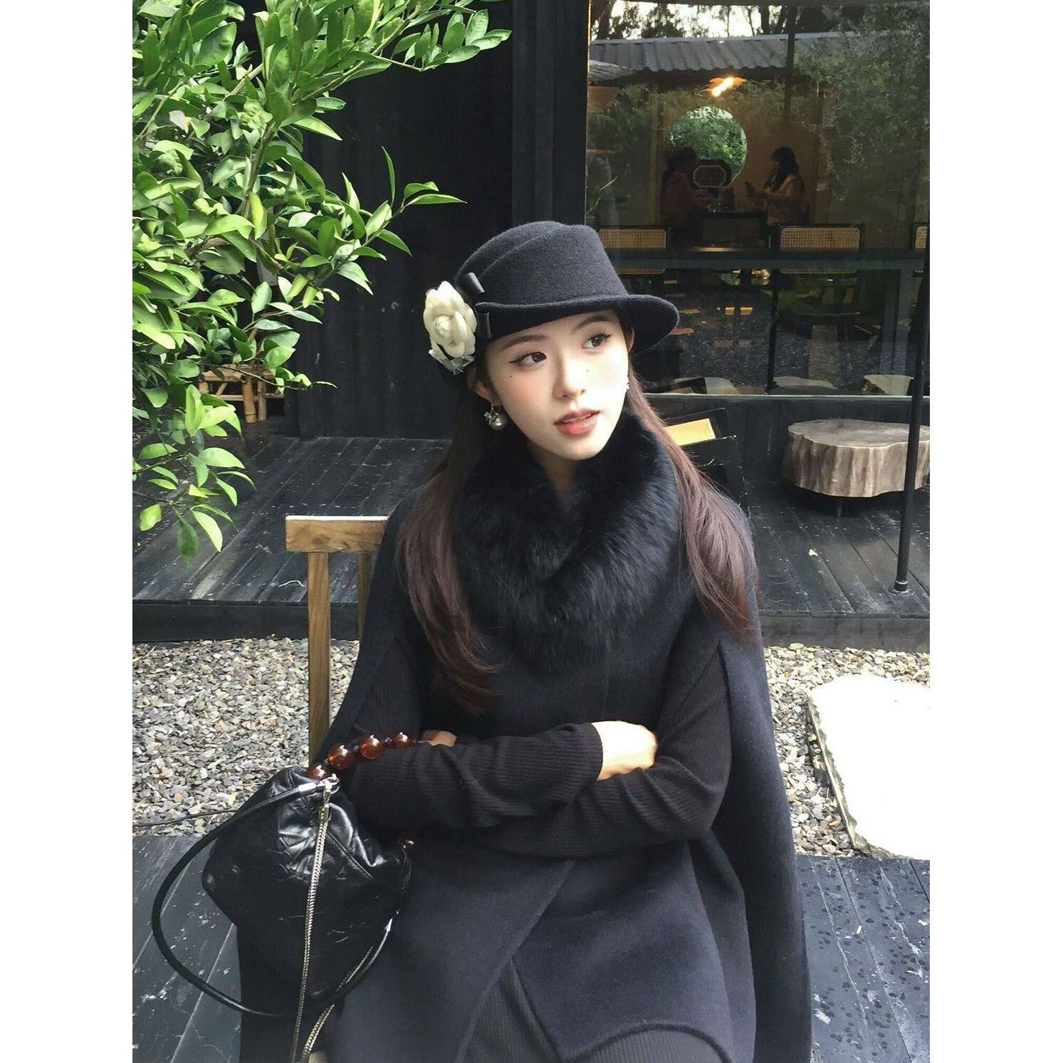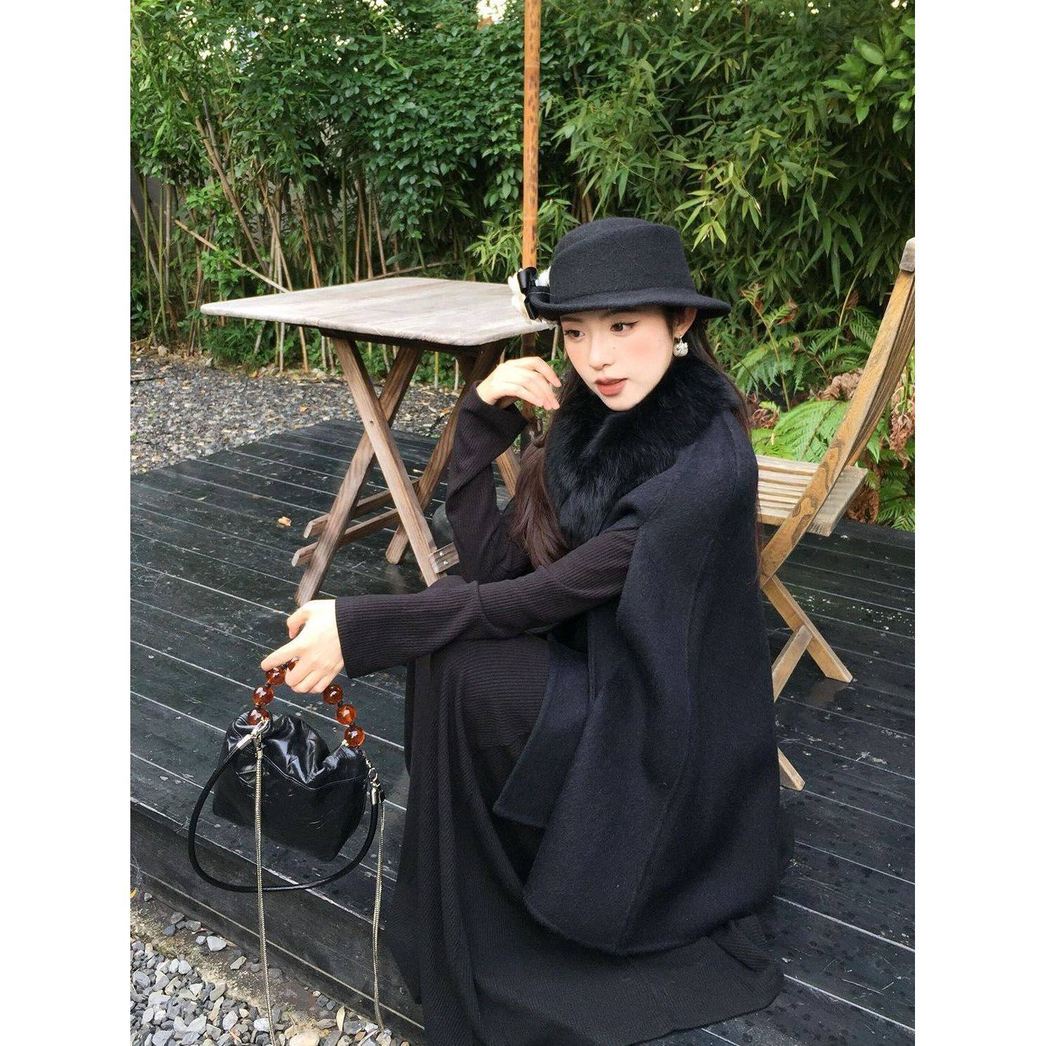 财阀千金 斗篷大衣女2025秋冬新款外套气质韩系连衣裙毛领套装