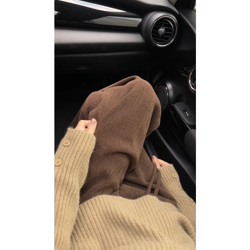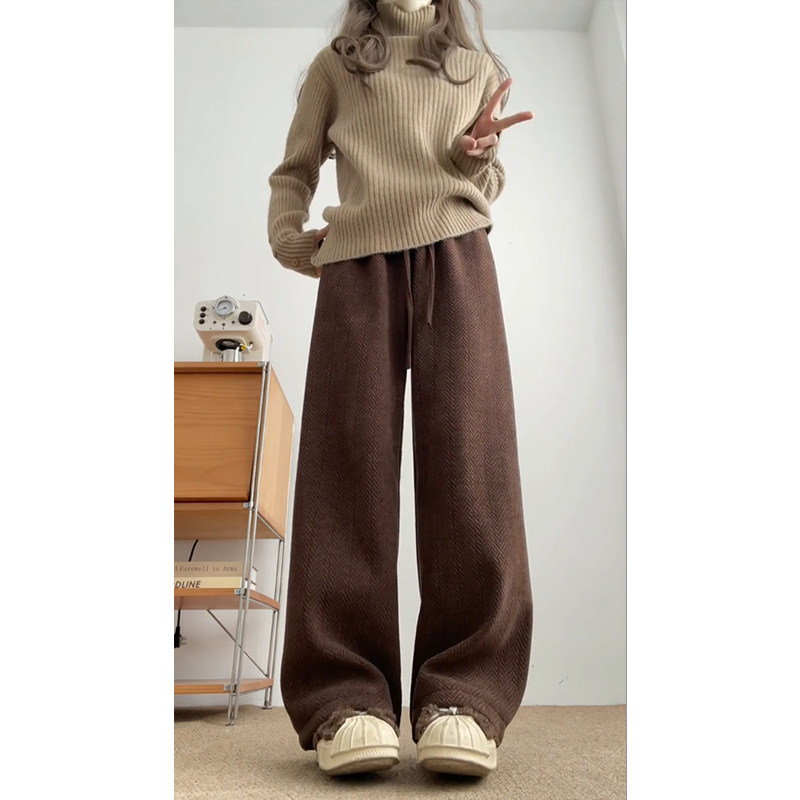 棕色阔腿裤女2025新款慵懒直筒拖地裤秋冬季加绒高个子休闲长裤子