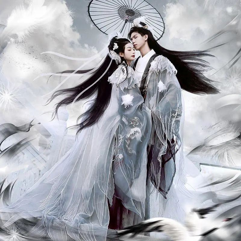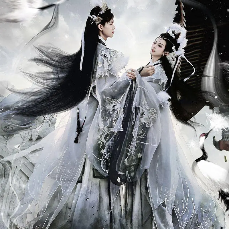 汉旭原创汉服魏晋国风齐腰情侣CP【鹤鸣九霄】男女同款武侠走秀款
