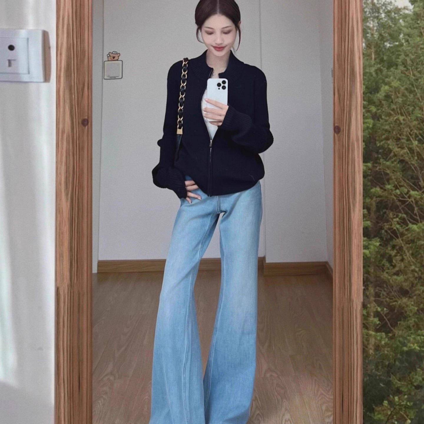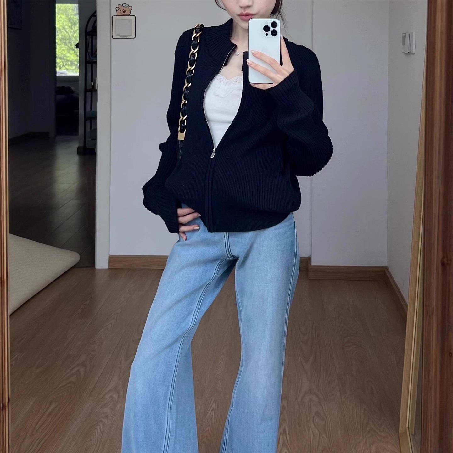 立领拉链针织开衫女春秋2025新款外穿修身显瘦毛衣外套老钱风上衣