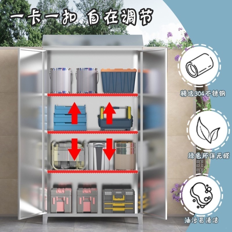 304不锈钢户外防水防雨储物柜防锈花园阳台庭院带锁收纳工具柜子