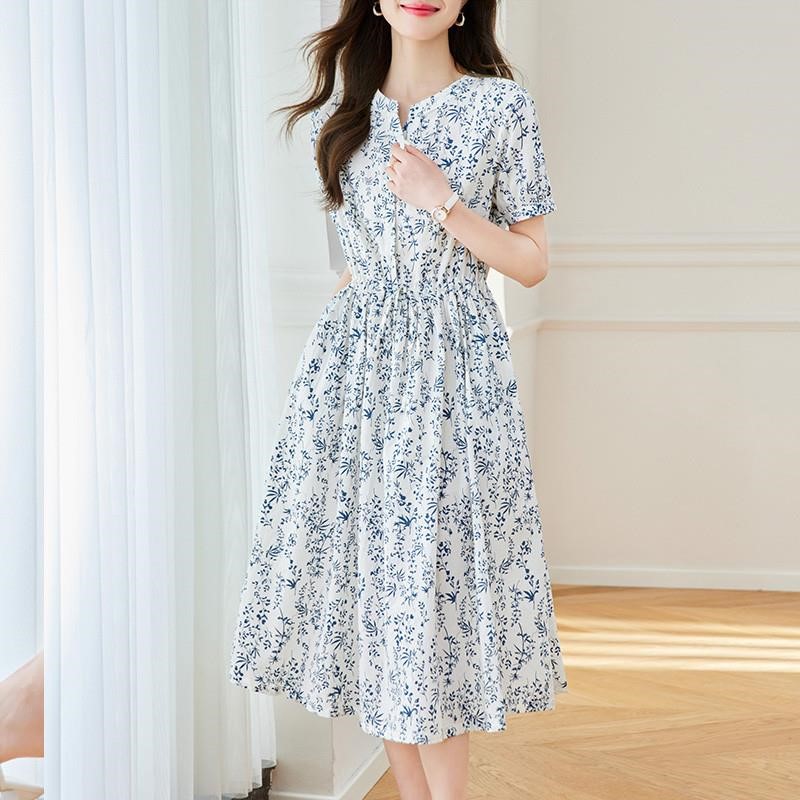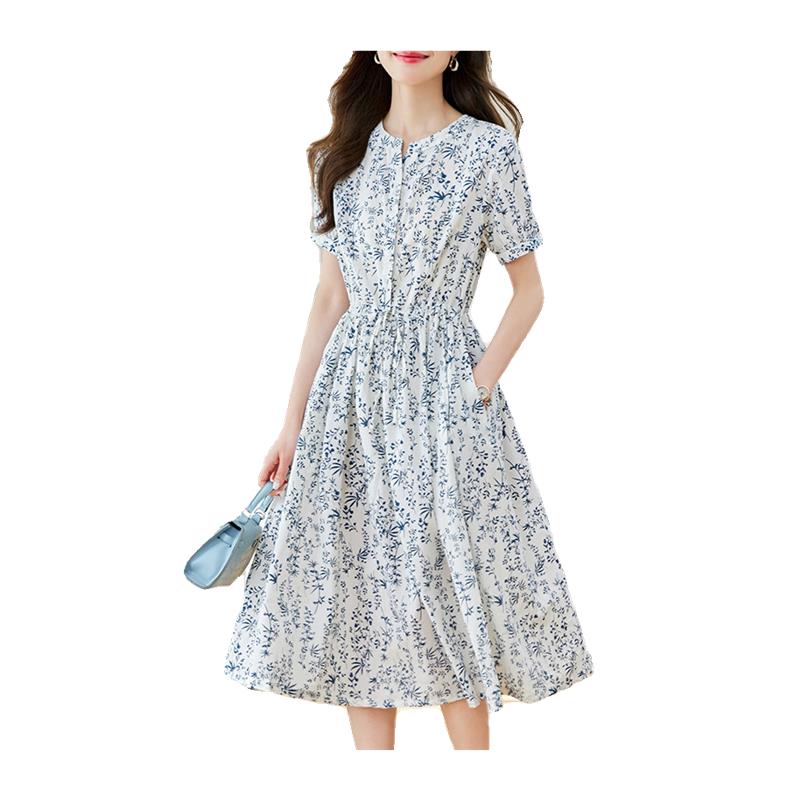 衬衫连衣裙2025夏季新款女装收腰显瘦小碎花中长款裙子气质a字裙