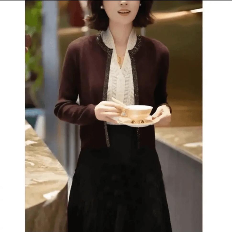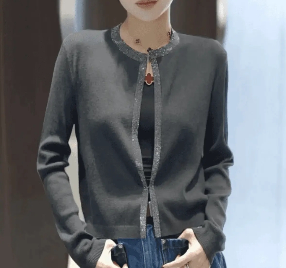 鄂尔多斯市产针织衫薄款羊毛女圆领开衫毛衣春秋打底衫羊长袖女