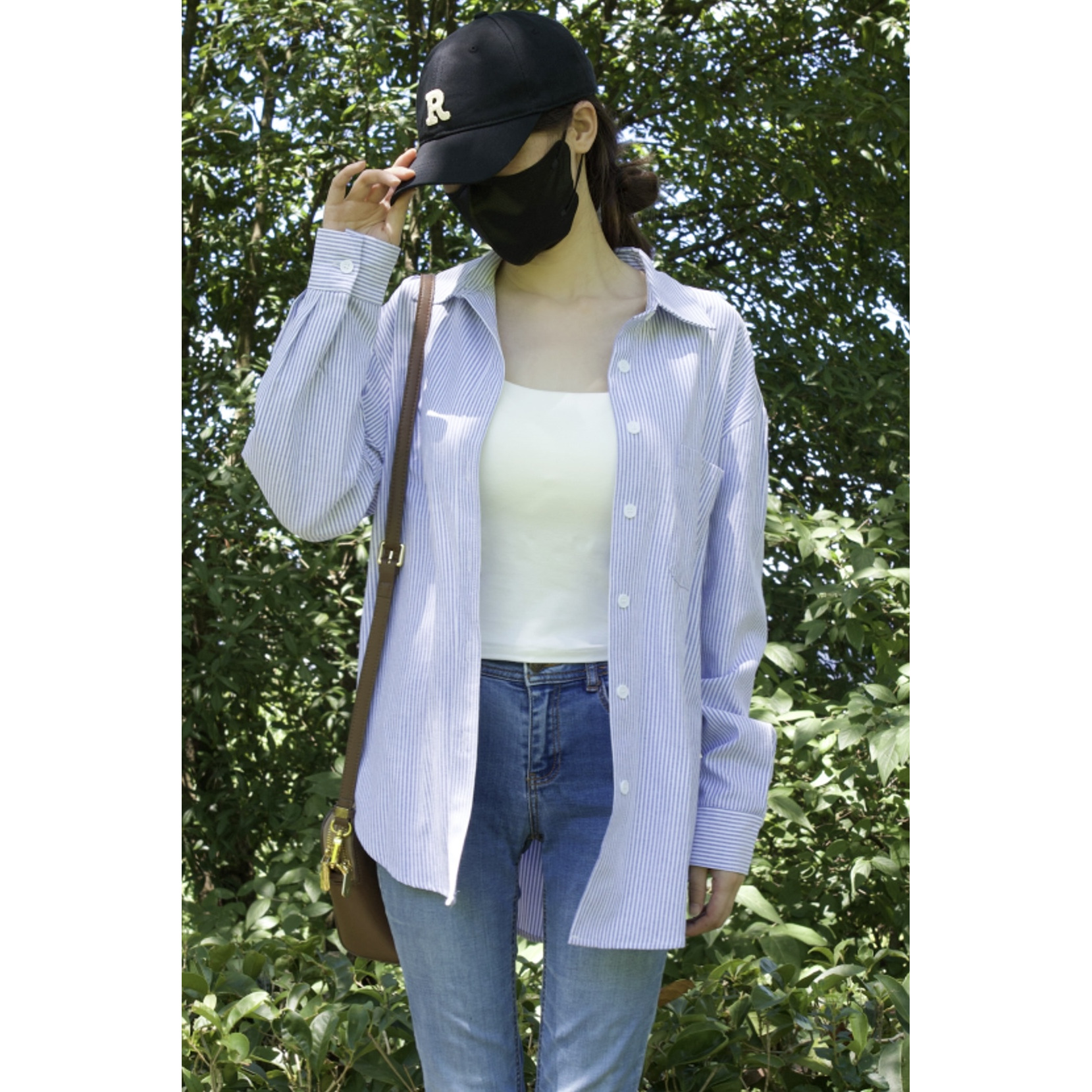 法式蓝色竖纹纹法式衫衬外套透气慵懒风上衣宽松休闲潮韩版高级感