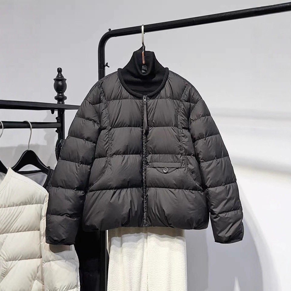 休闲羽绒服外套2025简约复古韩系圆领白鸭绒保暖百搭宽松休闲外套