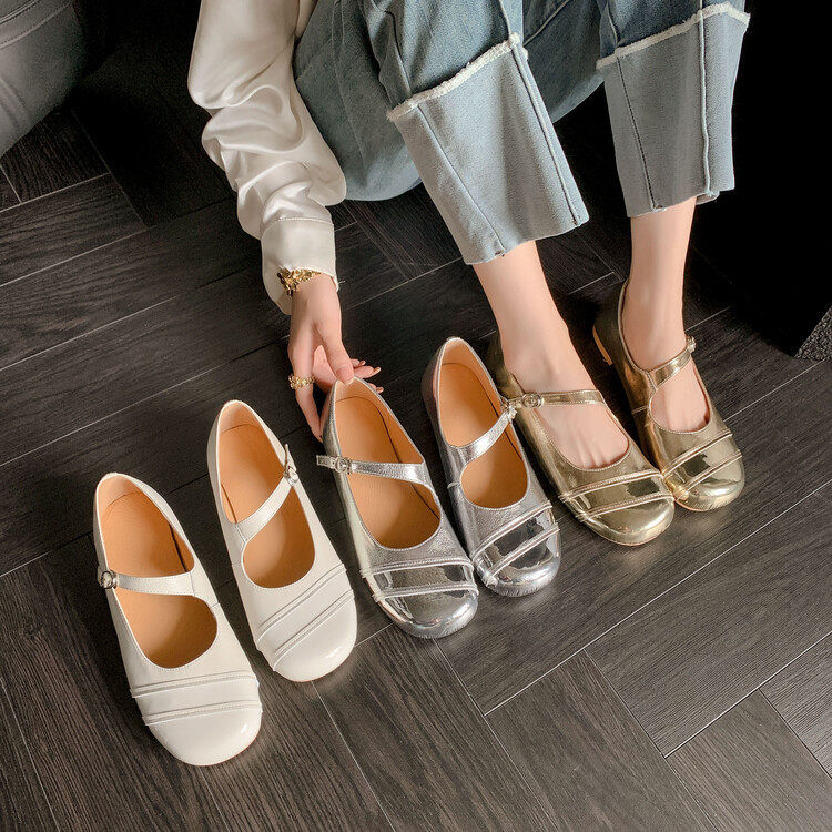单鞋浅口圆头玛丽珍单鞋2023秋低跟拼接鞋头仙女风芭蕾舞平底鞋