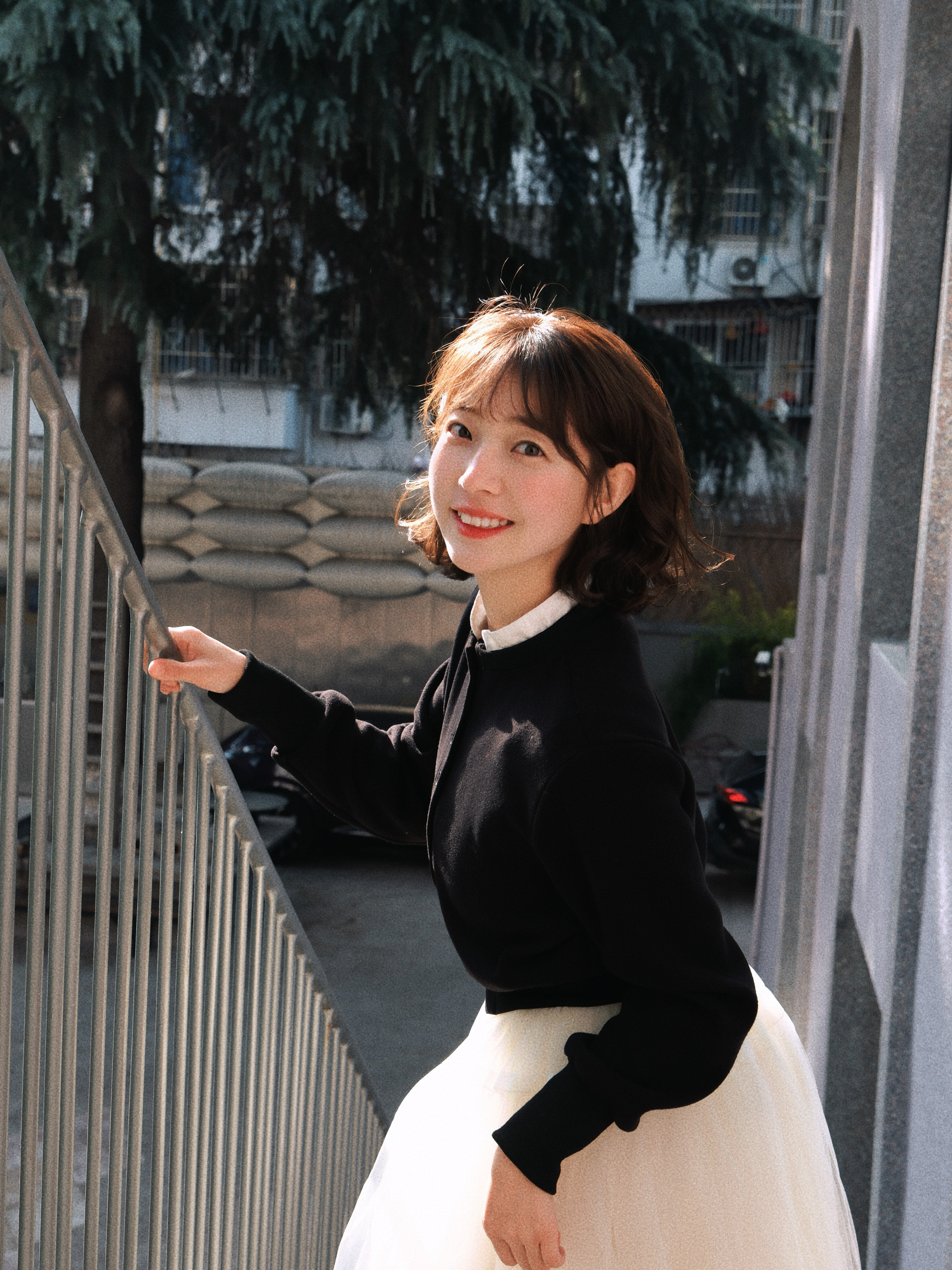 BONNIE《迪士尼在逃公主》气质黑白穿搭带假领全棉上衣公主蓬蓬裙