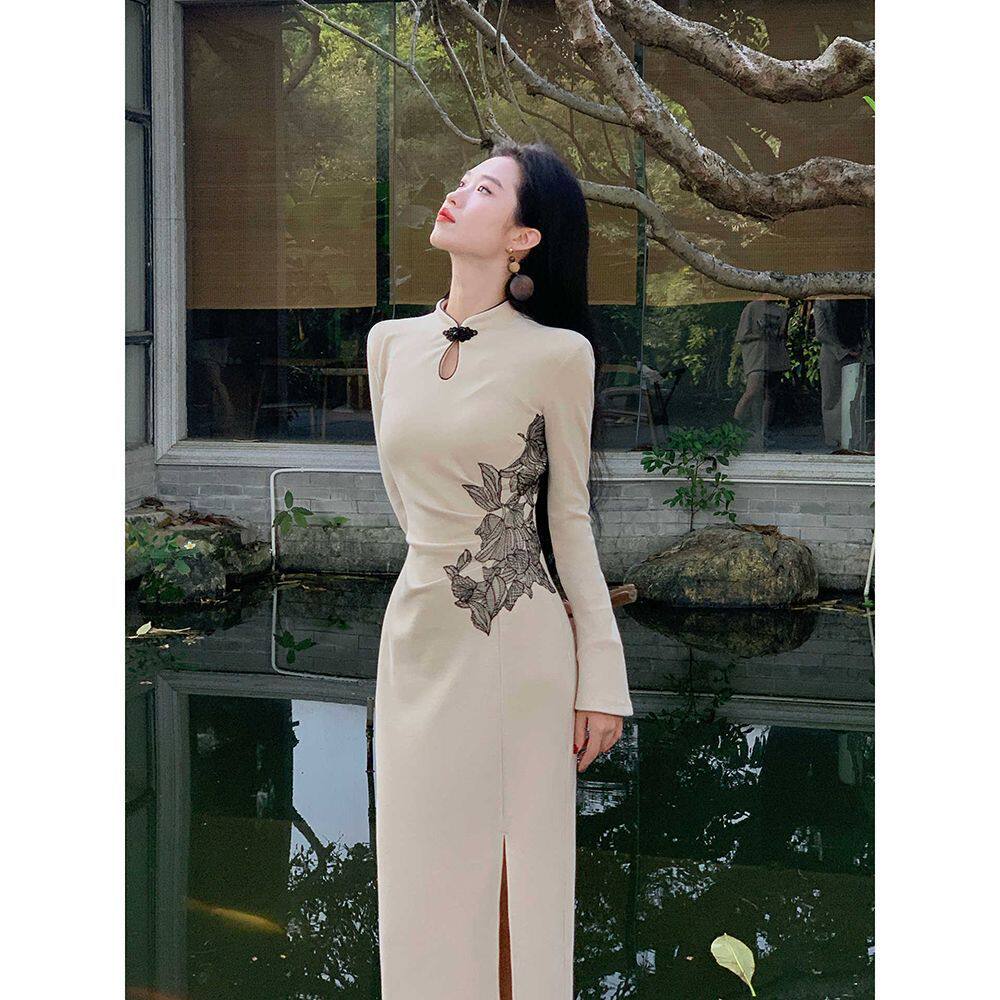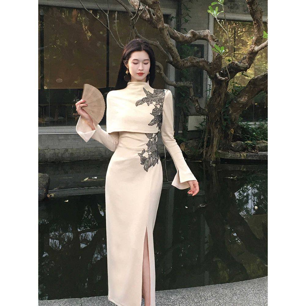 早秋新中式复古改良旗袍重工刺绣倒大袖收腰气质国风连衣裙2025秋