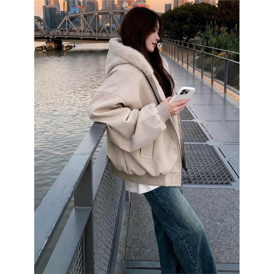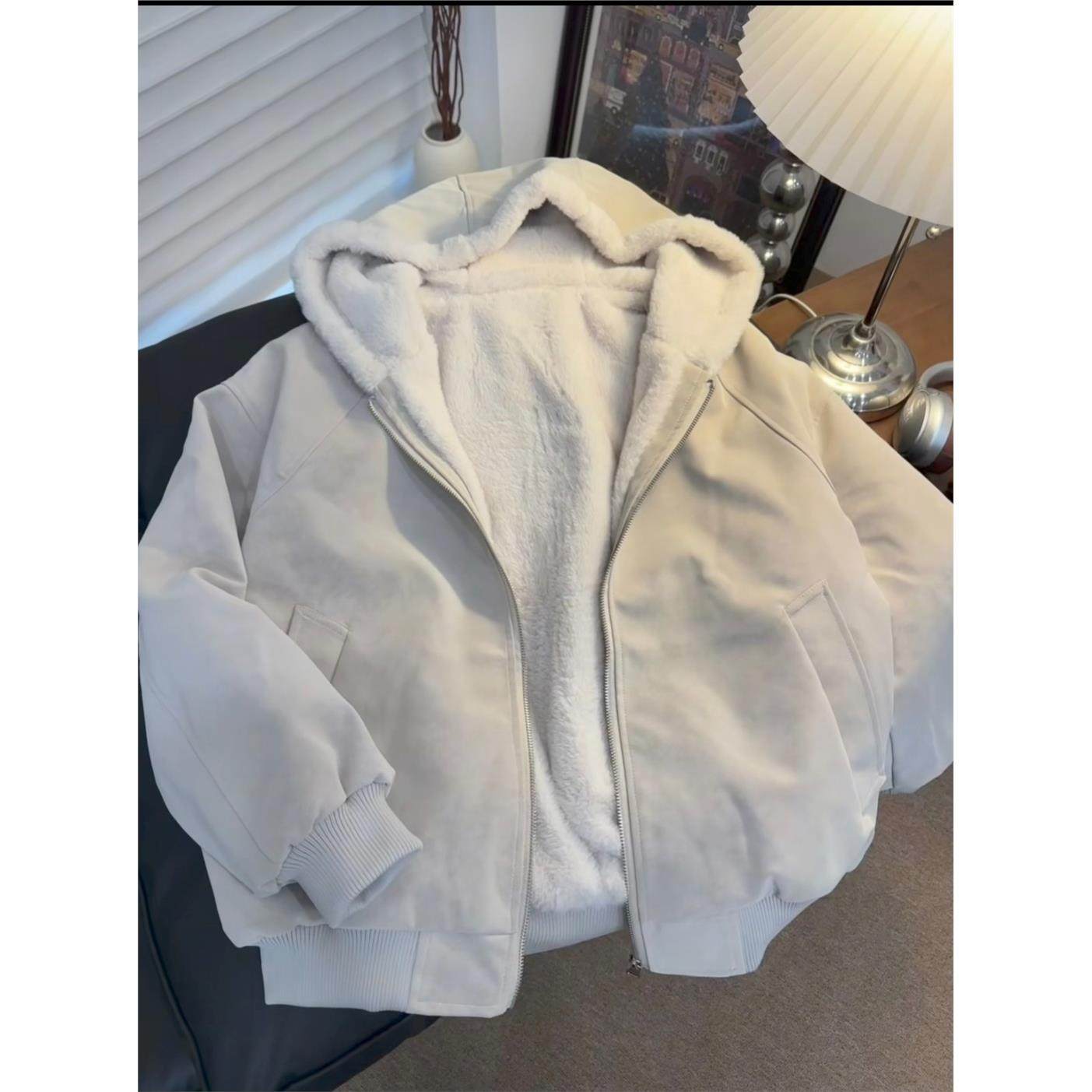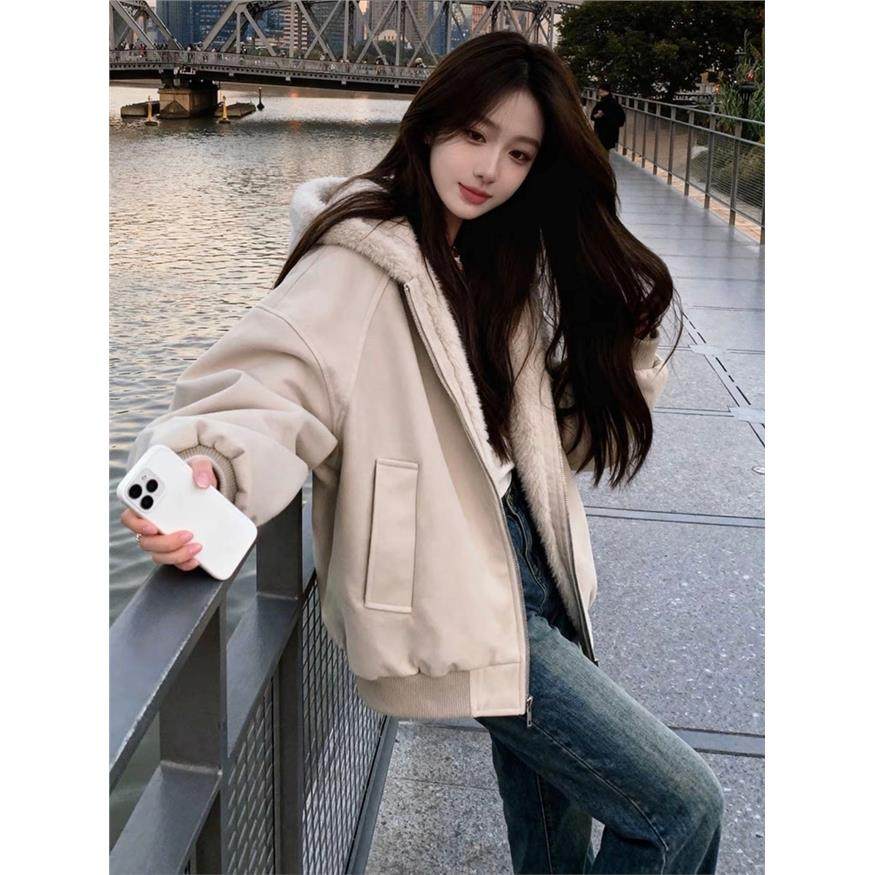 羊羔毛绒厚外套棉服女款2025新款冬季连帽小个子短款保暖情侣棉袄
