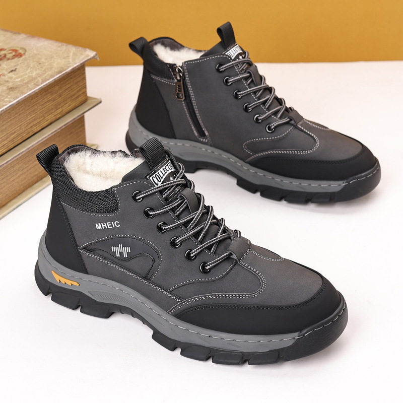 2025冬款奥伦棉鞋羊毛保暖帮加厚防滑雪地靴皮靴登山鞋靴男鞋