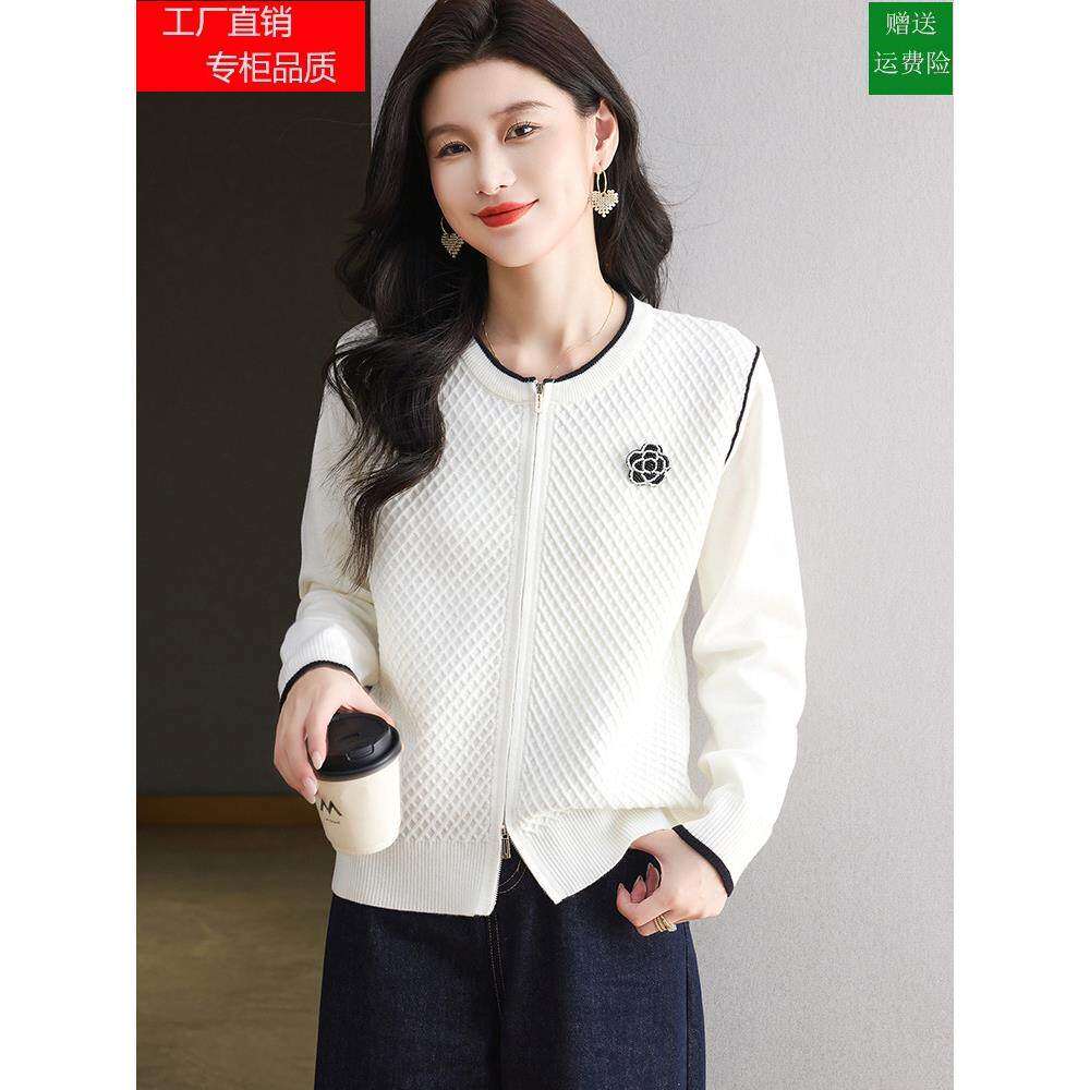 2025圆领双拉链针织开衫女春秋新款羊毛衫高级感棒球服毛衣外套