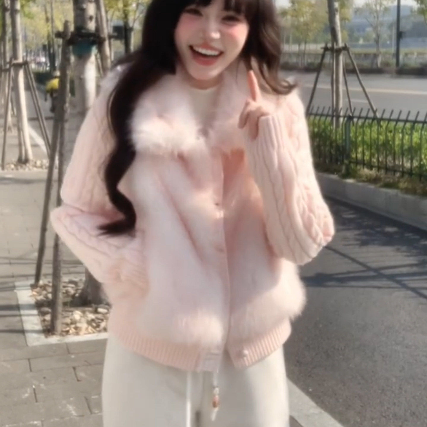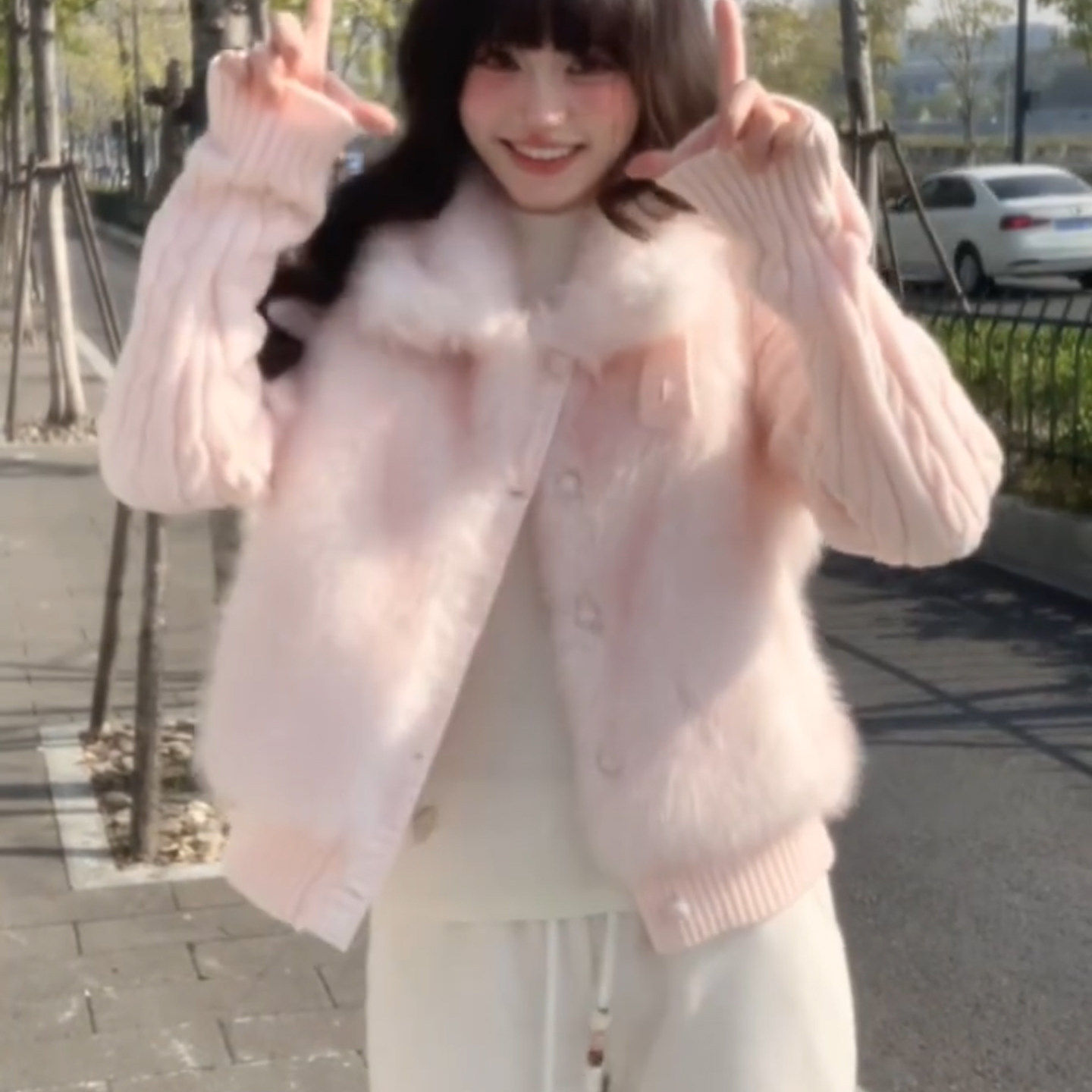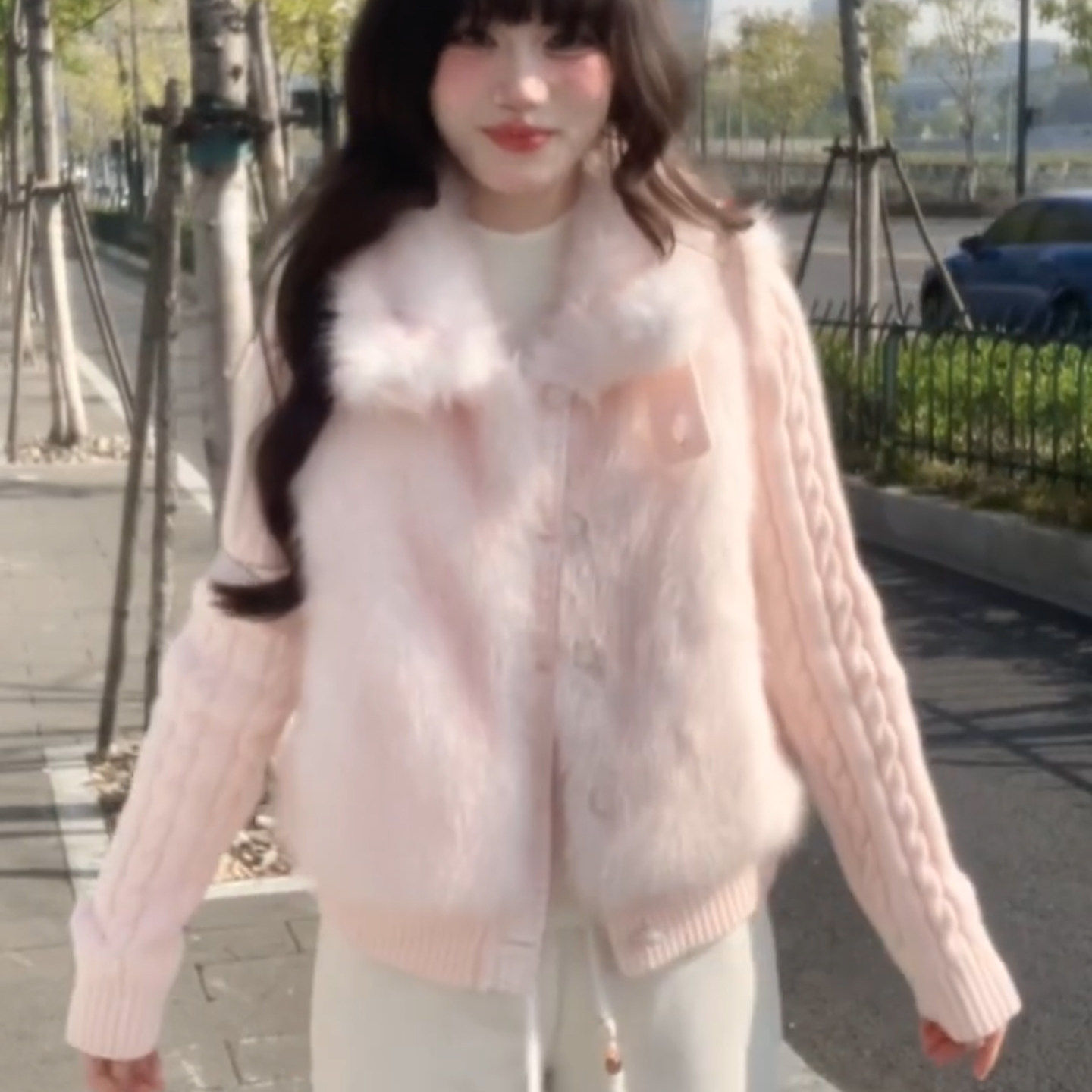 千金风环保皮草外套女冬2025新款针织拼接仿貂毛短款可爱毛绒棉服