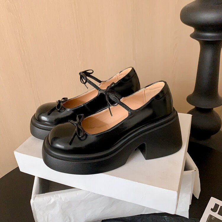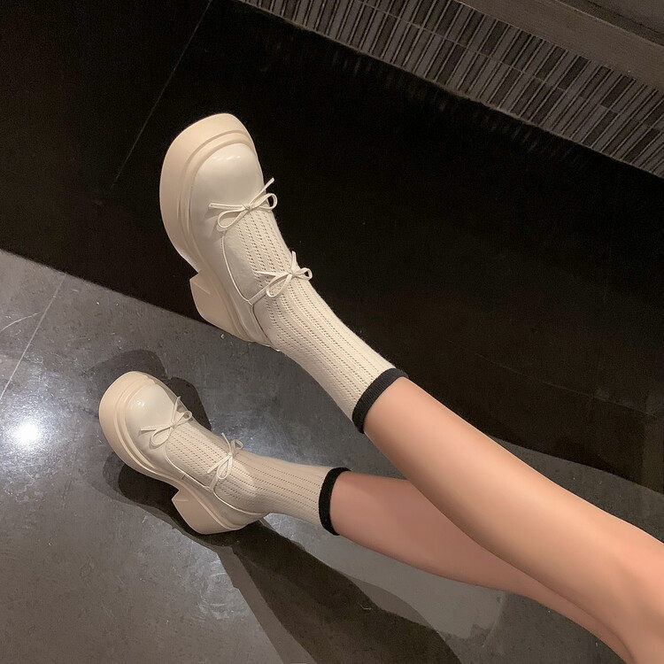 玛丽珍高跟鞋女2026新款厚底松糕鞋增高粗跟单鞋小皮鞋白色鞋子女