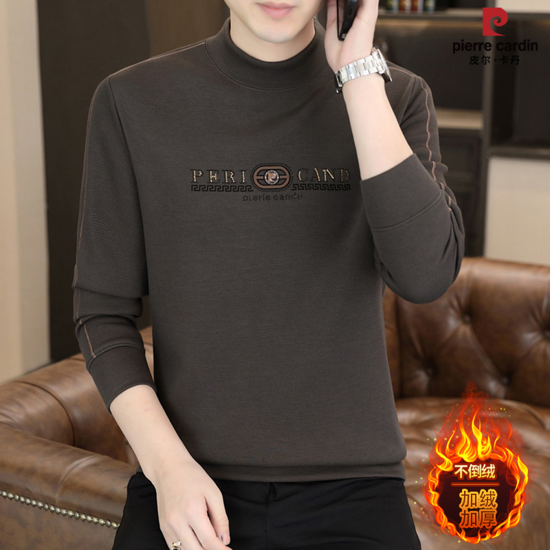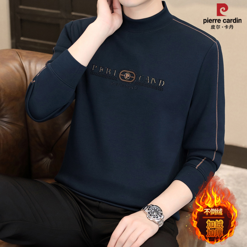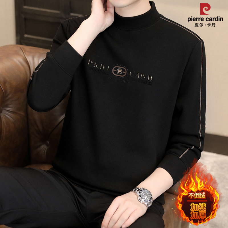 皮尔卡丹新款半高领加绒卫衣男士秋冬季加厚保暖休闲内搭打底衫潮