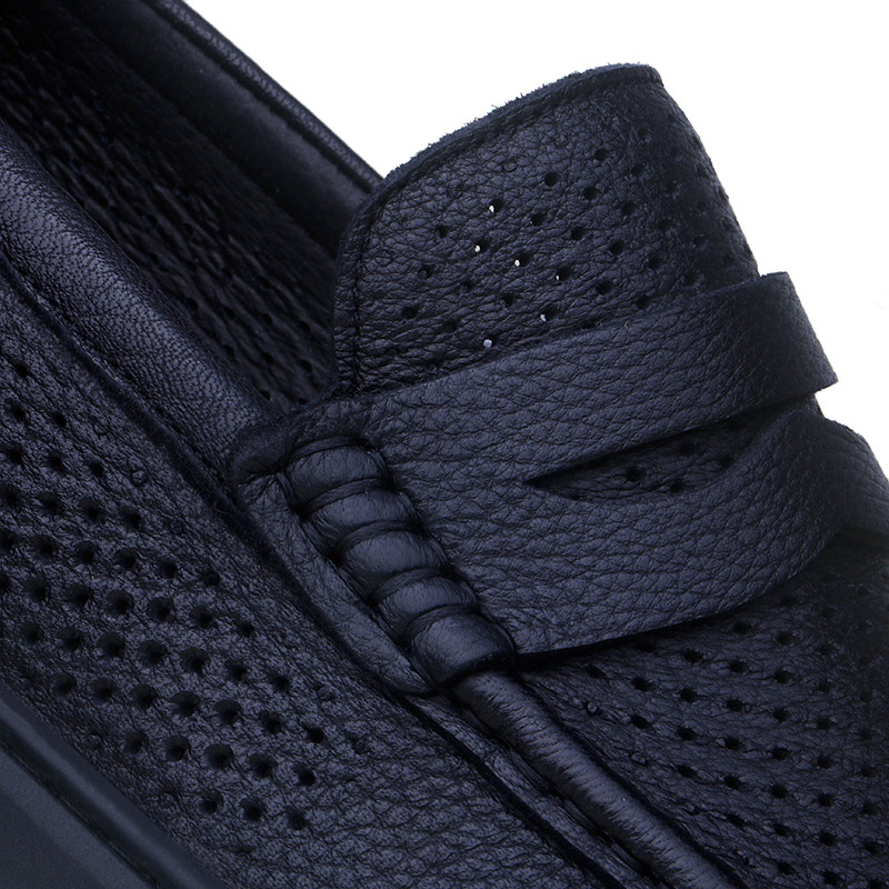 夏季透气镂空皮鞋一脚蹬皮鞋男新款头层鹿皮商务休闲鞋软底驾车鞋