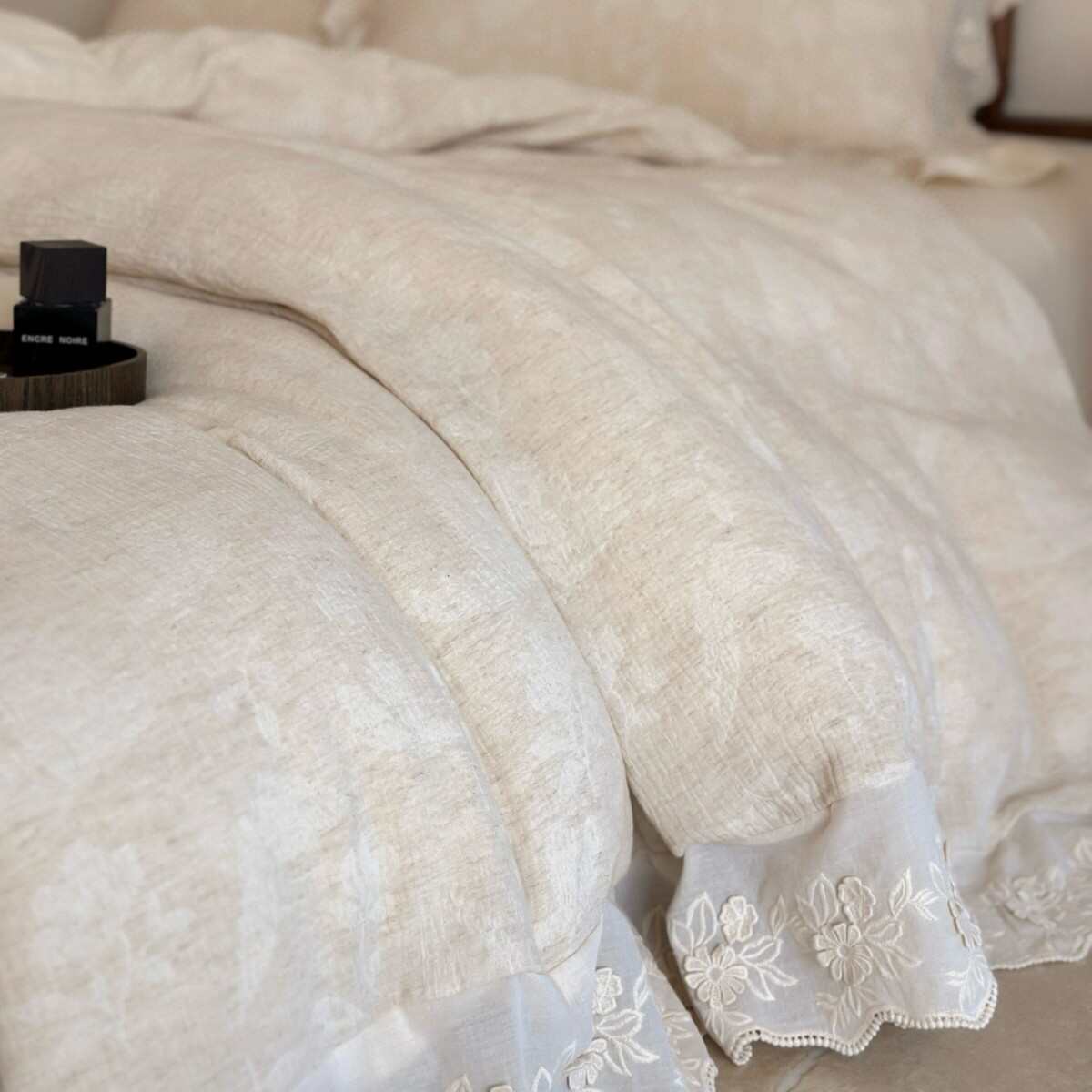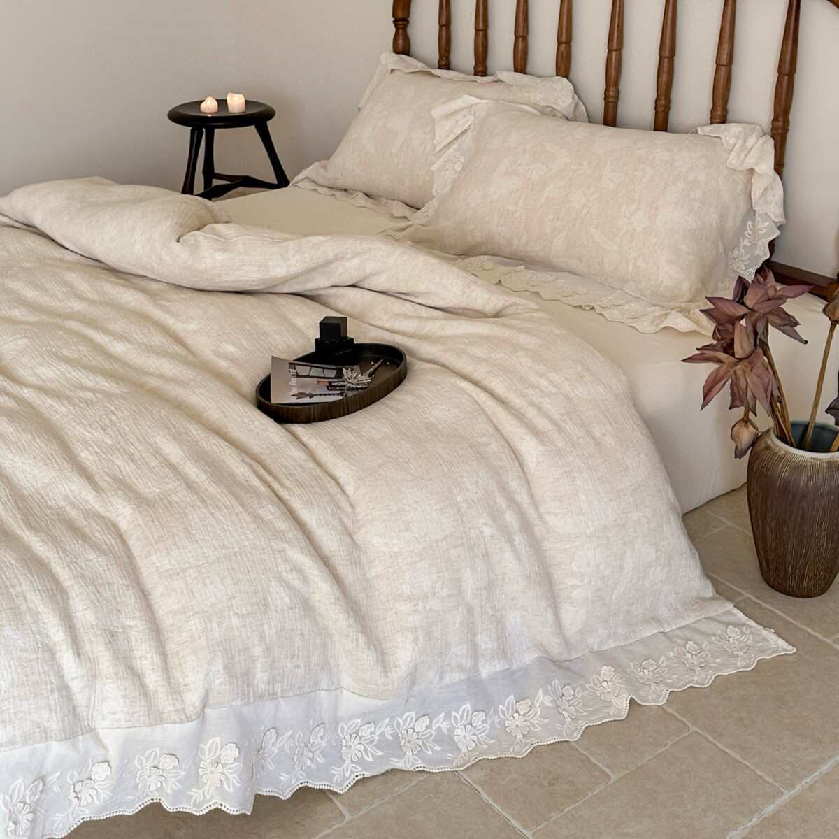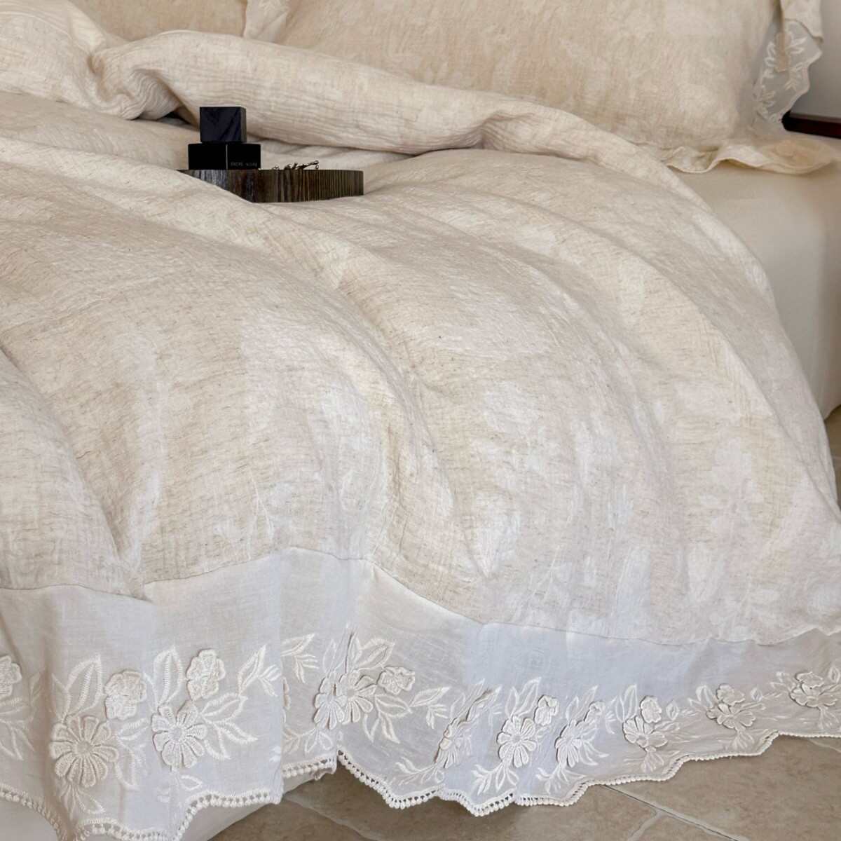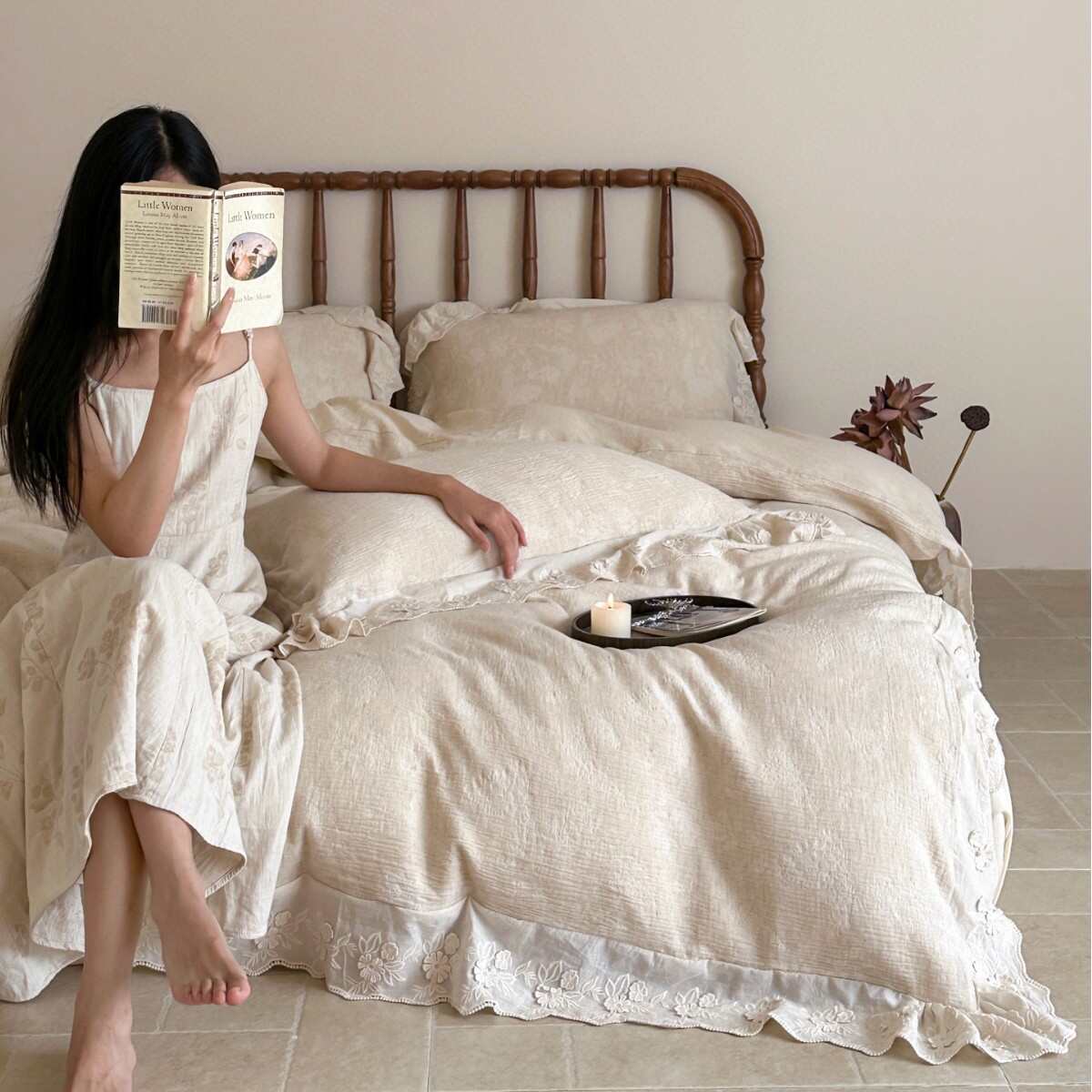 床单法式大色织砂质轻床上用品少女高级花边心被套色奢复古棉麻