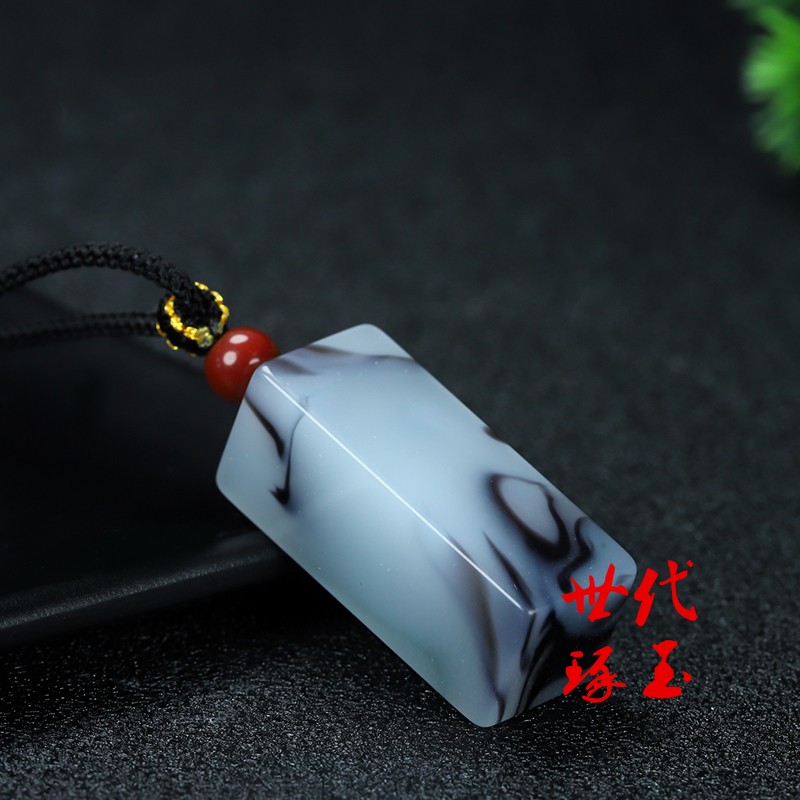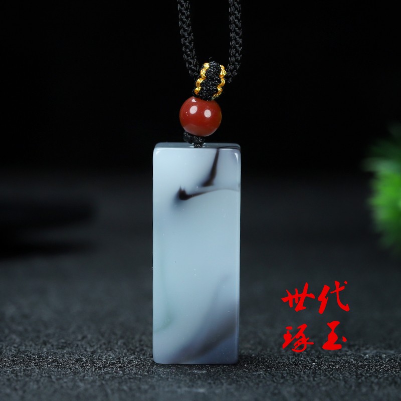新疆和田玉青花玉平安柱子项链吊坠男女款新疆玉印章挂件毛衣链