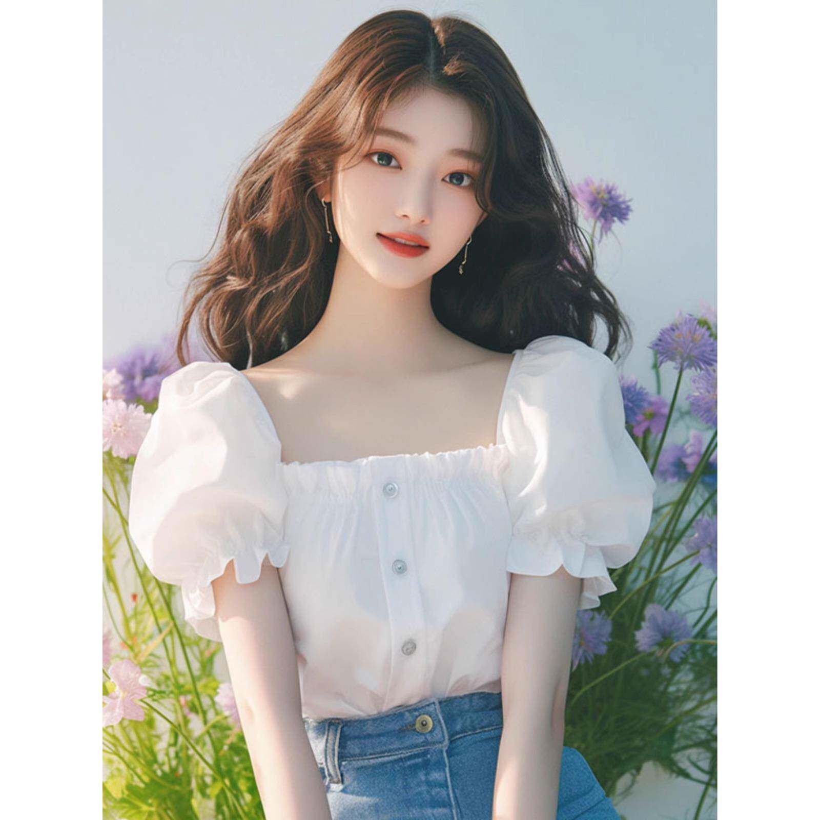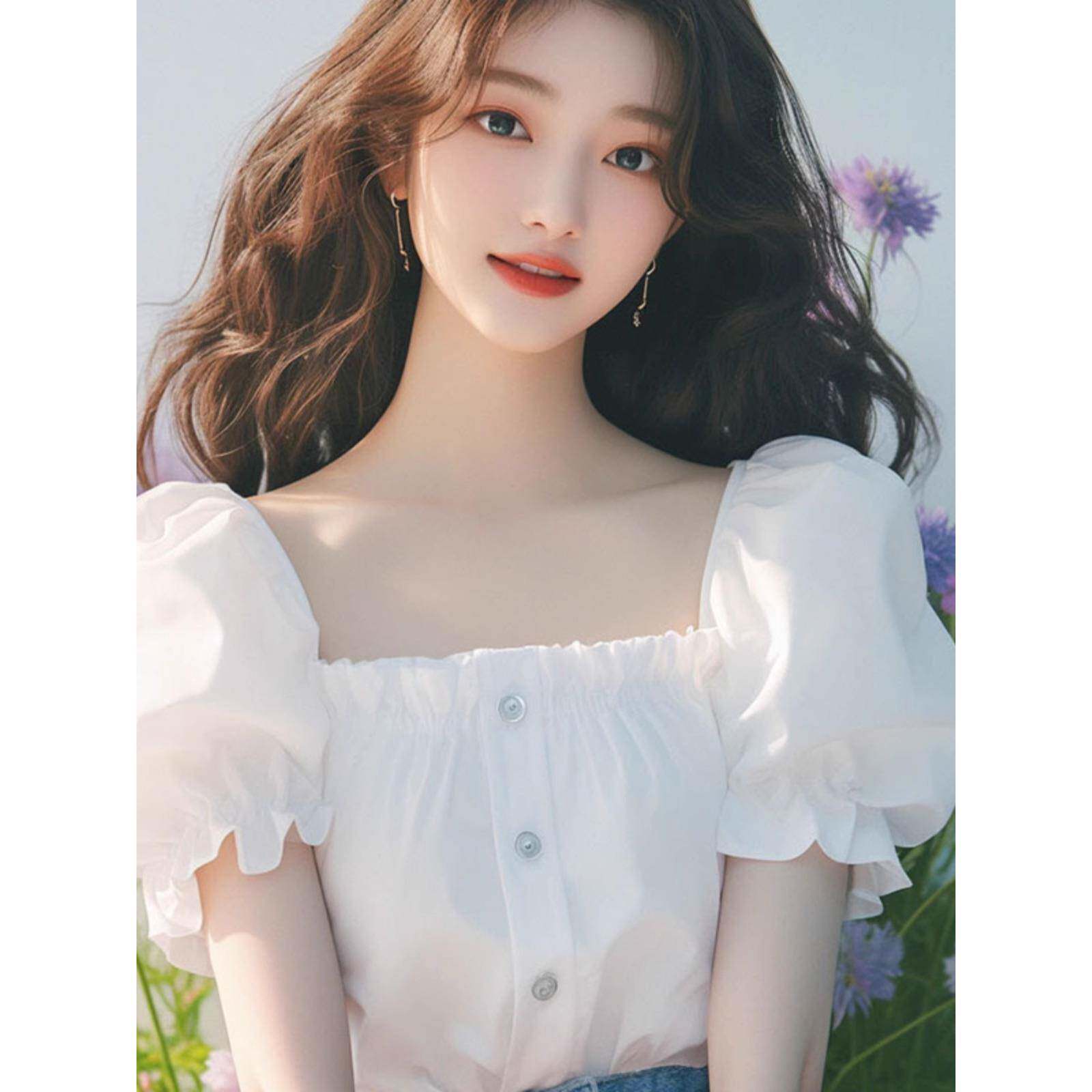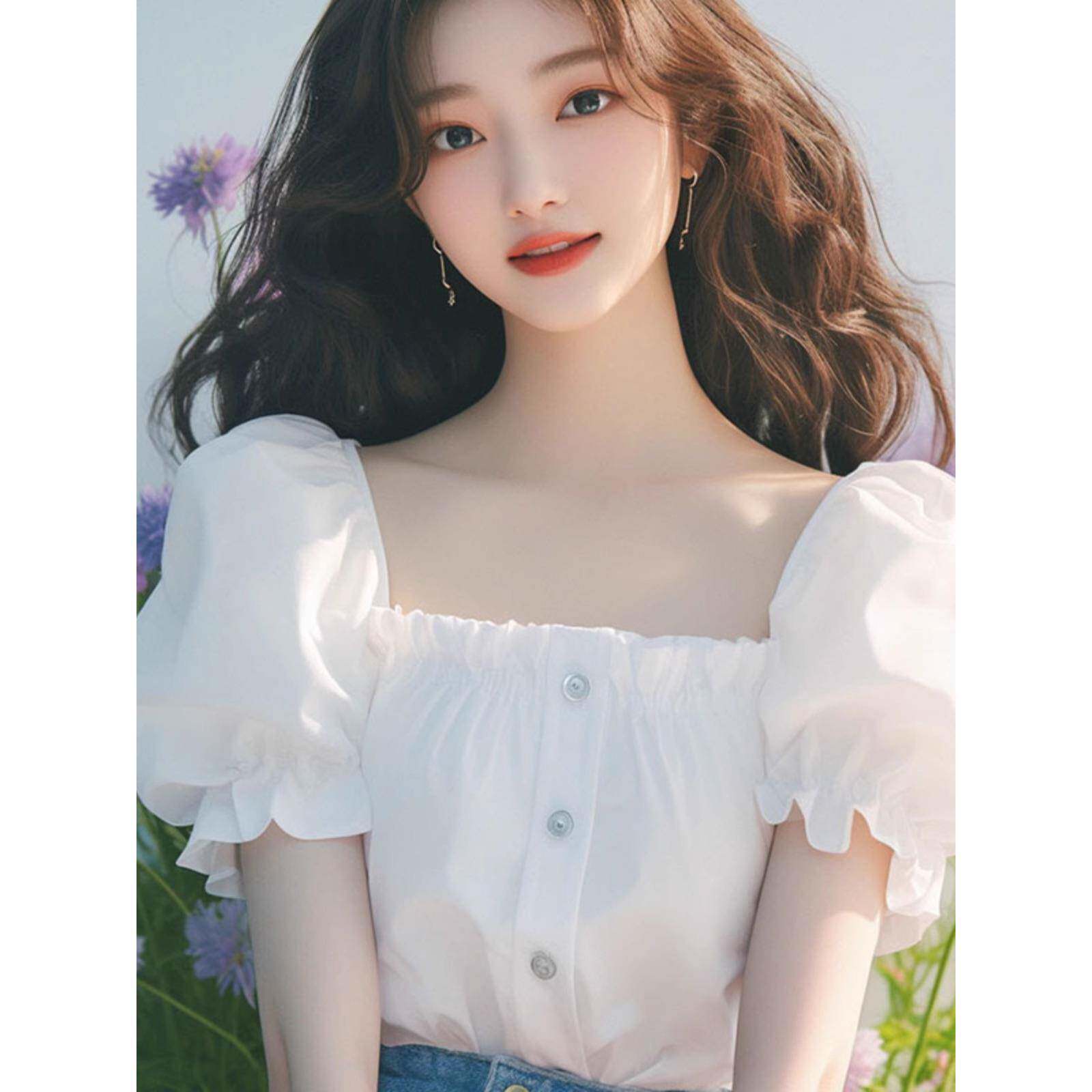 今年流行漂亮独特气质小衫法式洋气减龄白色方领泡泡袖衬衫女夏季