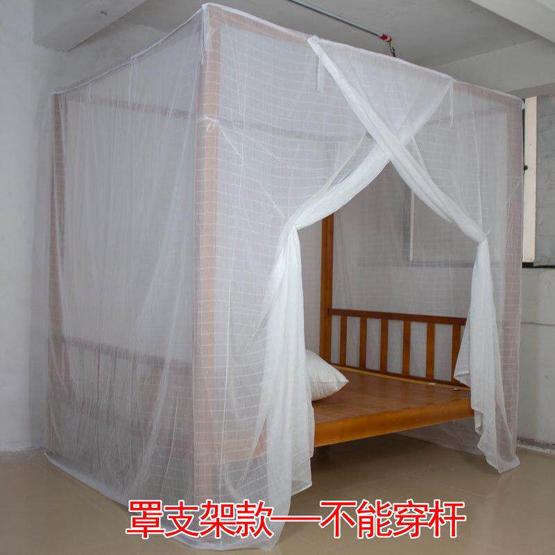 棉纱蚊帐双线加密加厚老式款传统单门防尘穿学生宿舍绑绳竹杆家用