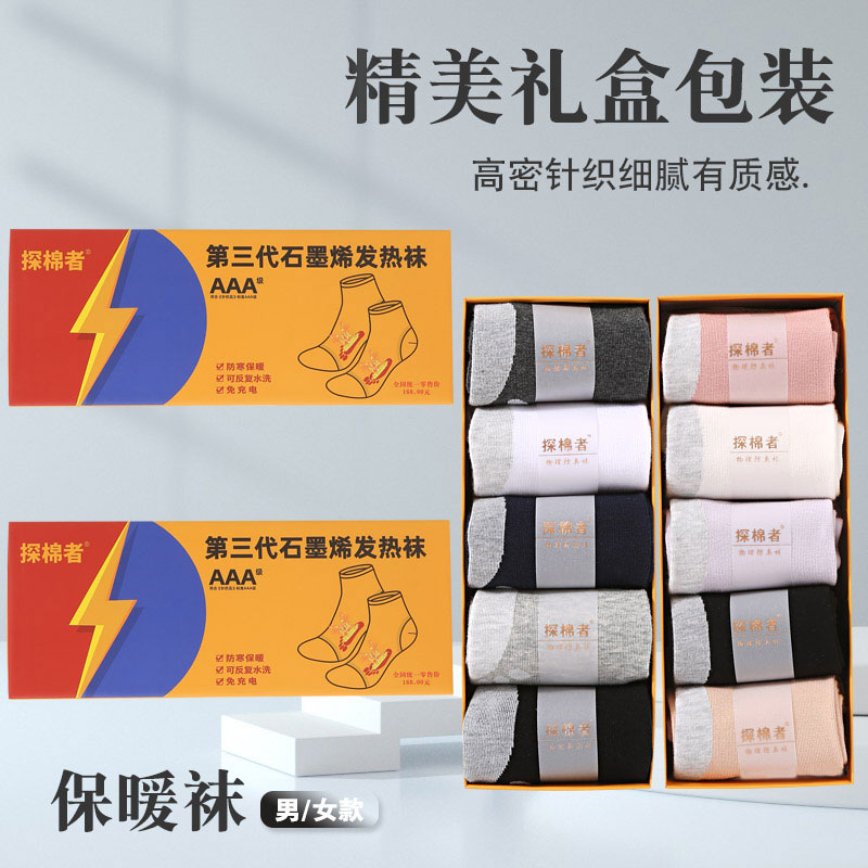探棉者男女士发热袜中筒5双装买一送一