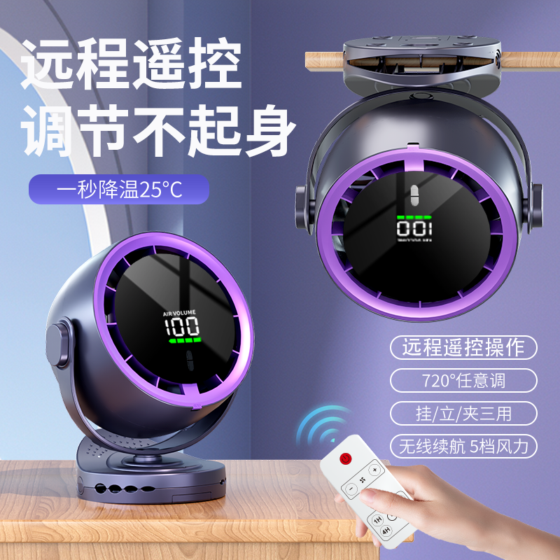 高速100档2025新款风扇桌面数显壁挂循环风扇静音涡轮夹子风