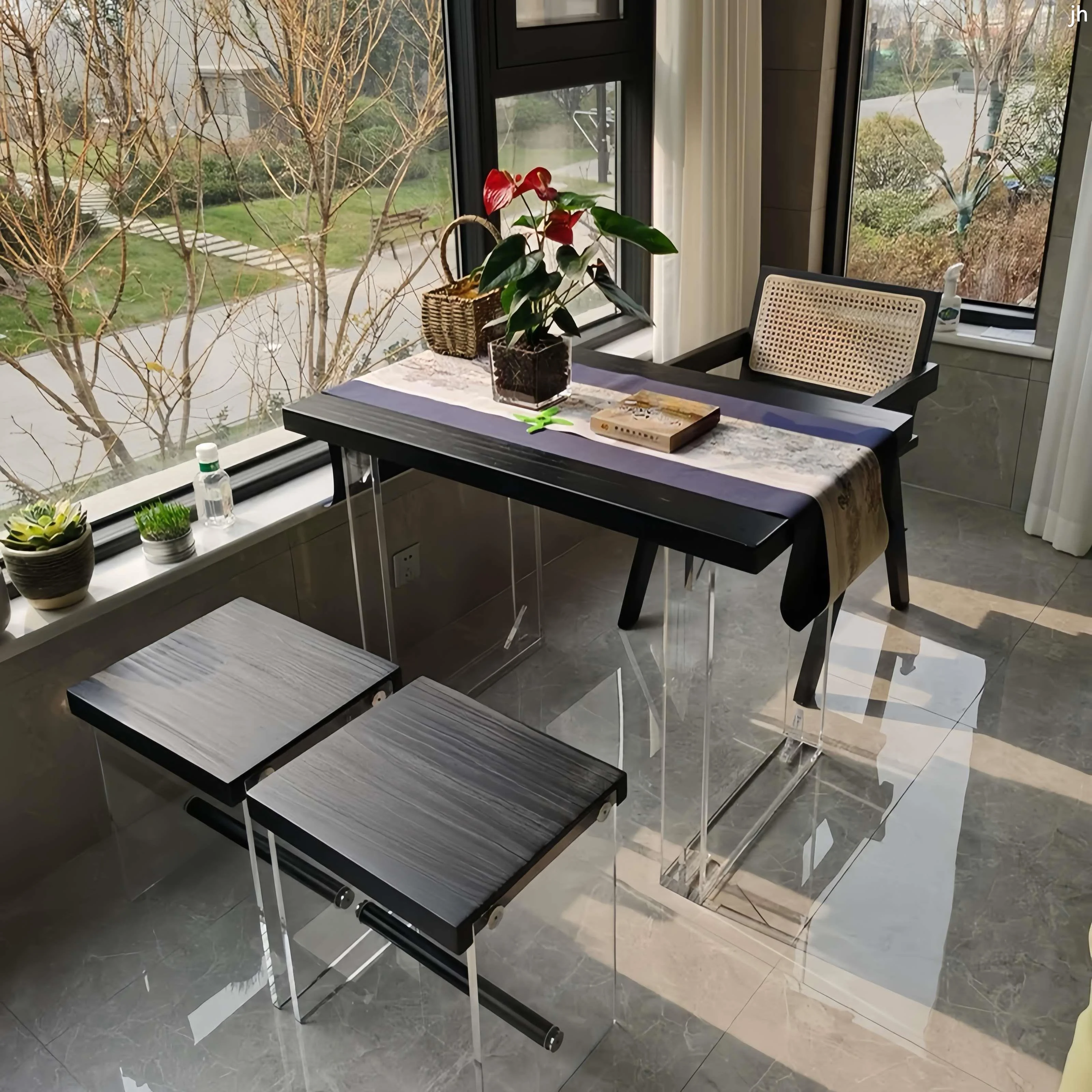简约侘寂风黑色阳台泡实木茶桌小户型客厅亚克力悬浮茶桌椅新品