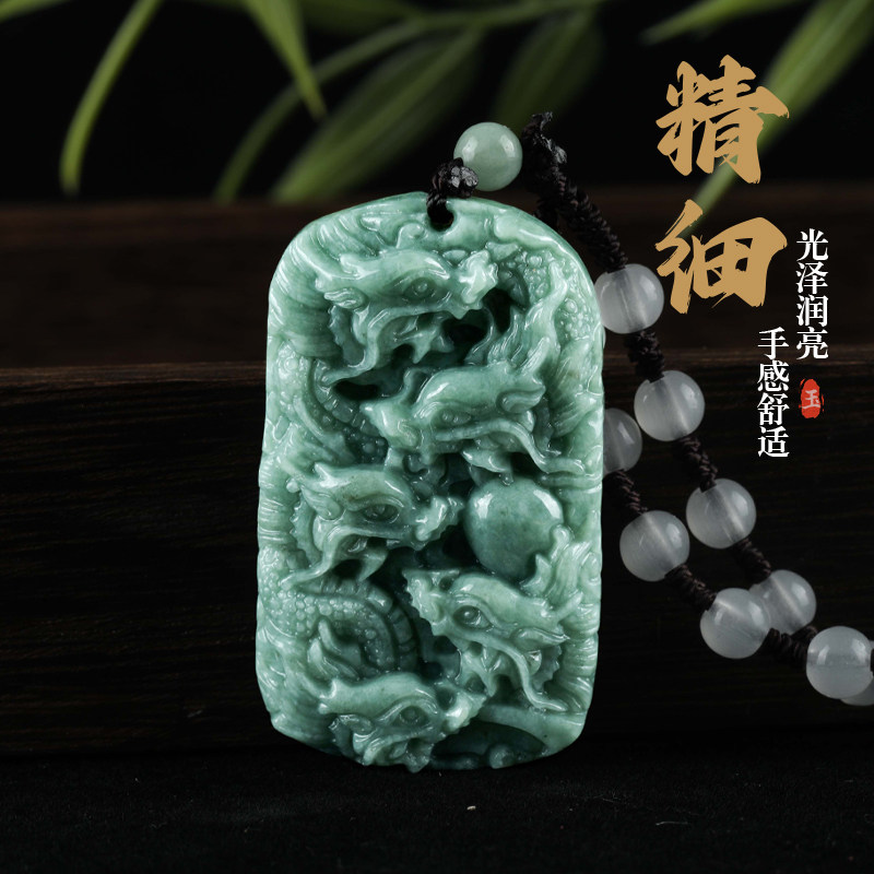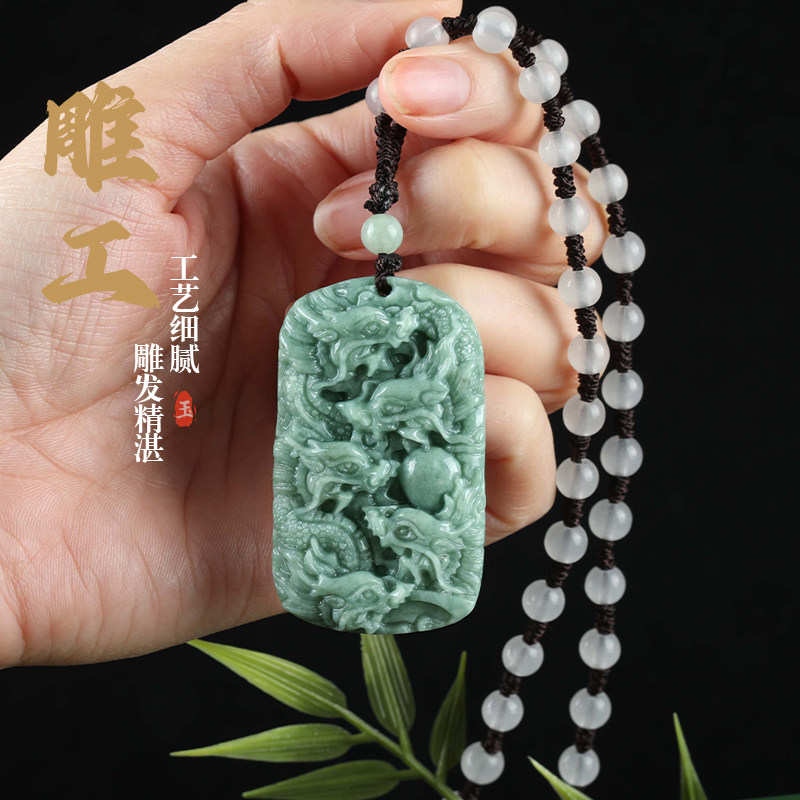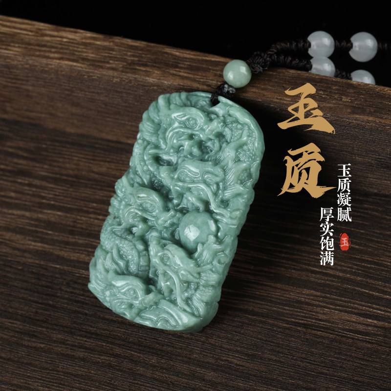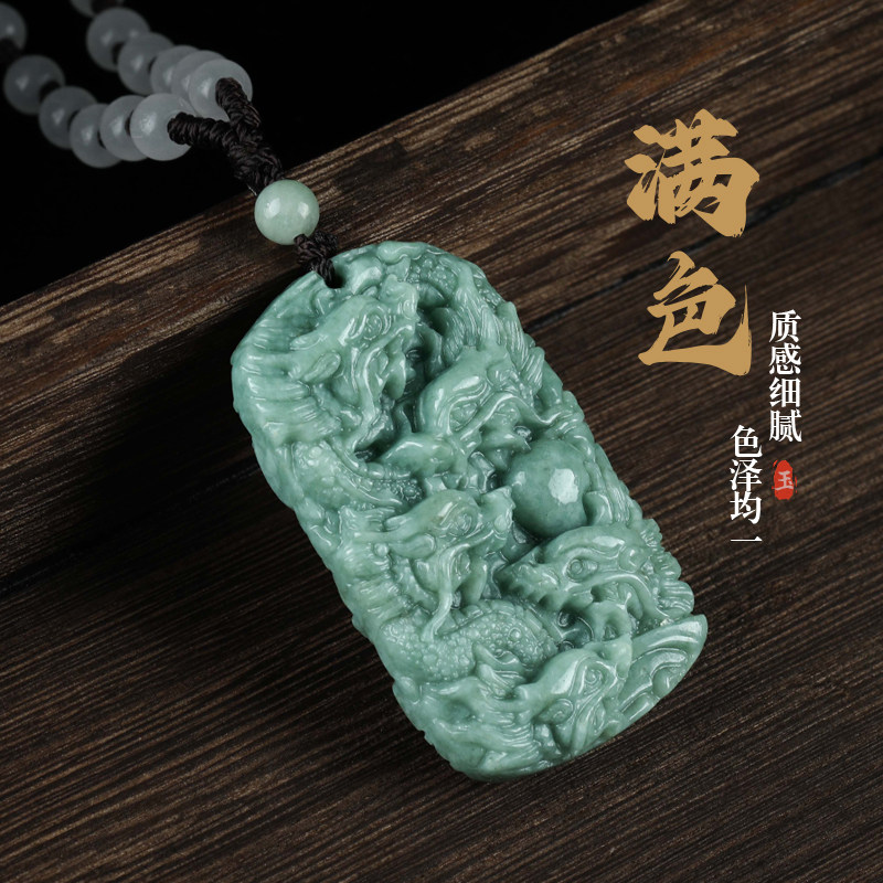 唐今玉天然a货翡翠玉龙牌九龙护主生肖龙玉石吊坠冰种挂件吊坠挂