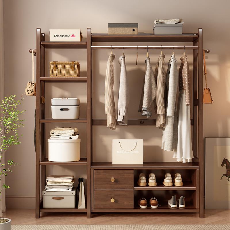 全实木衣架家用带储物柜挂衣架落地衣帽架卧室可坐挂衣服置物架子