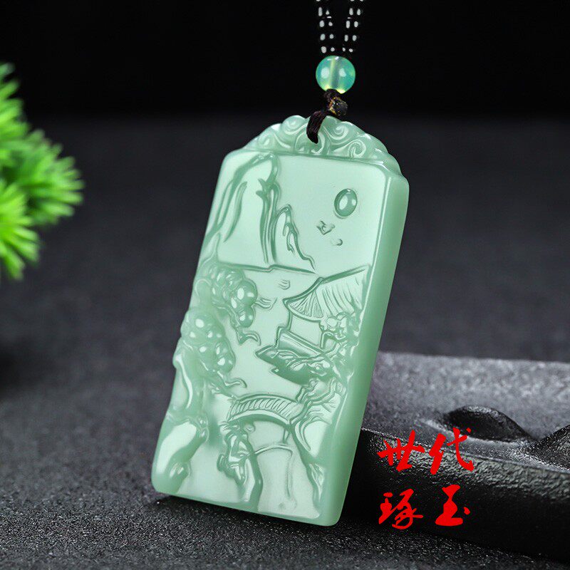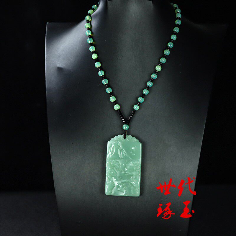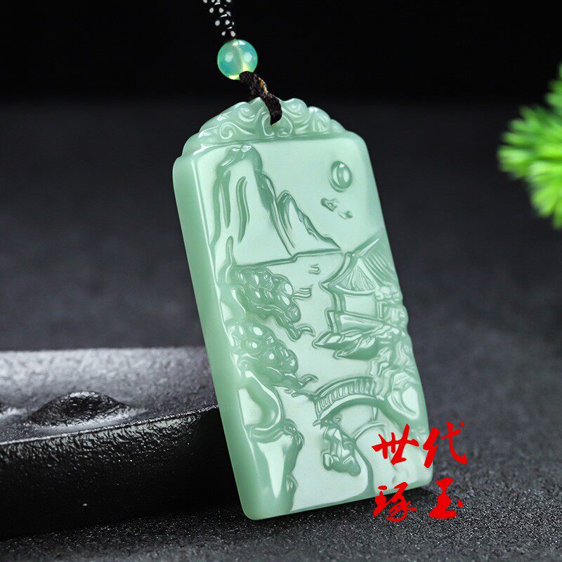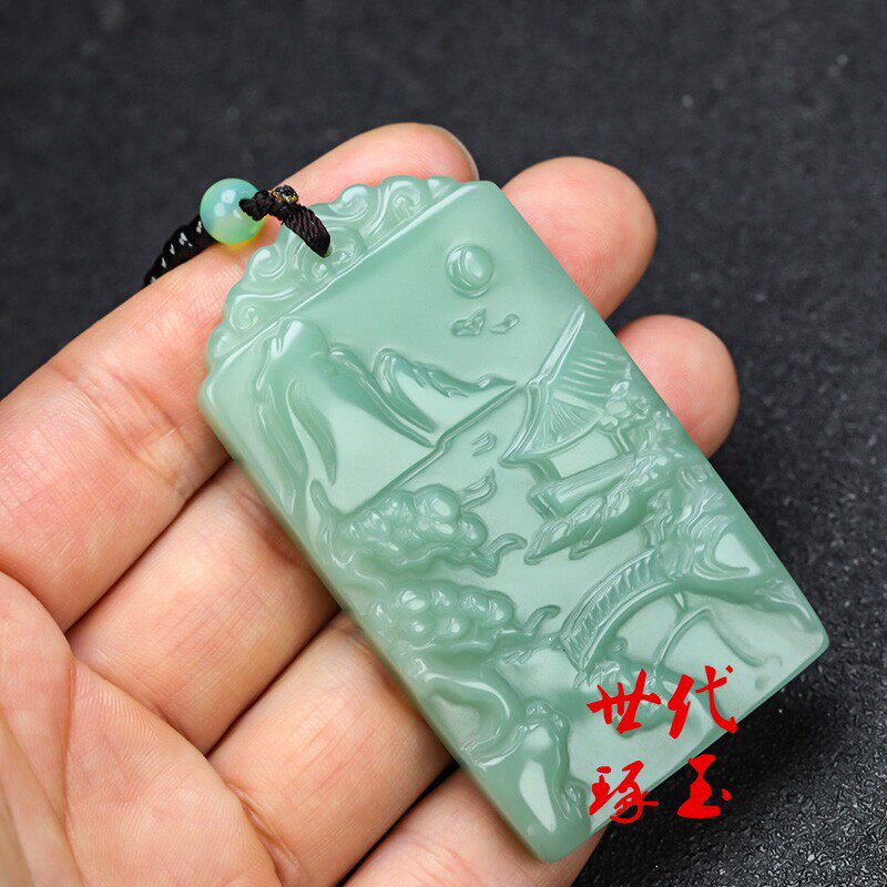 新疆和田玉湖水蓝山水牌吊坠男女且末蓝山水玉牌挂件玉坠玉佩项链