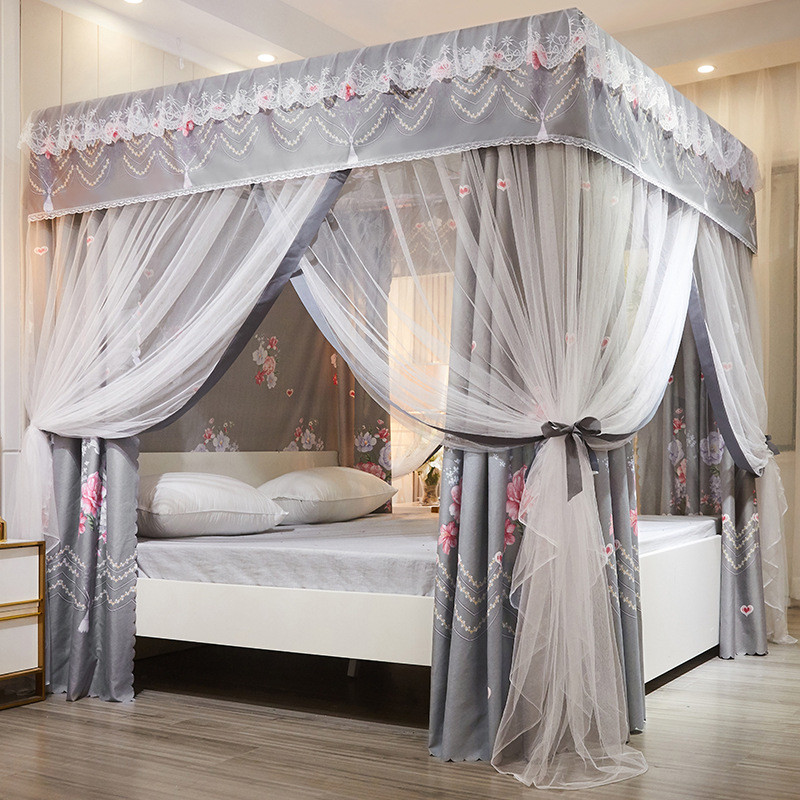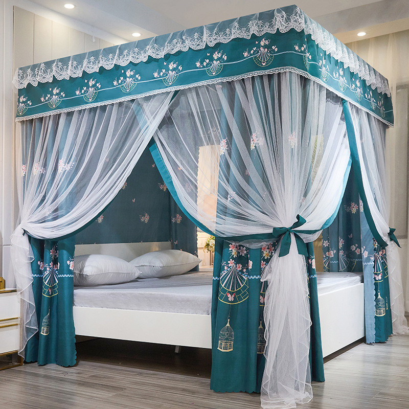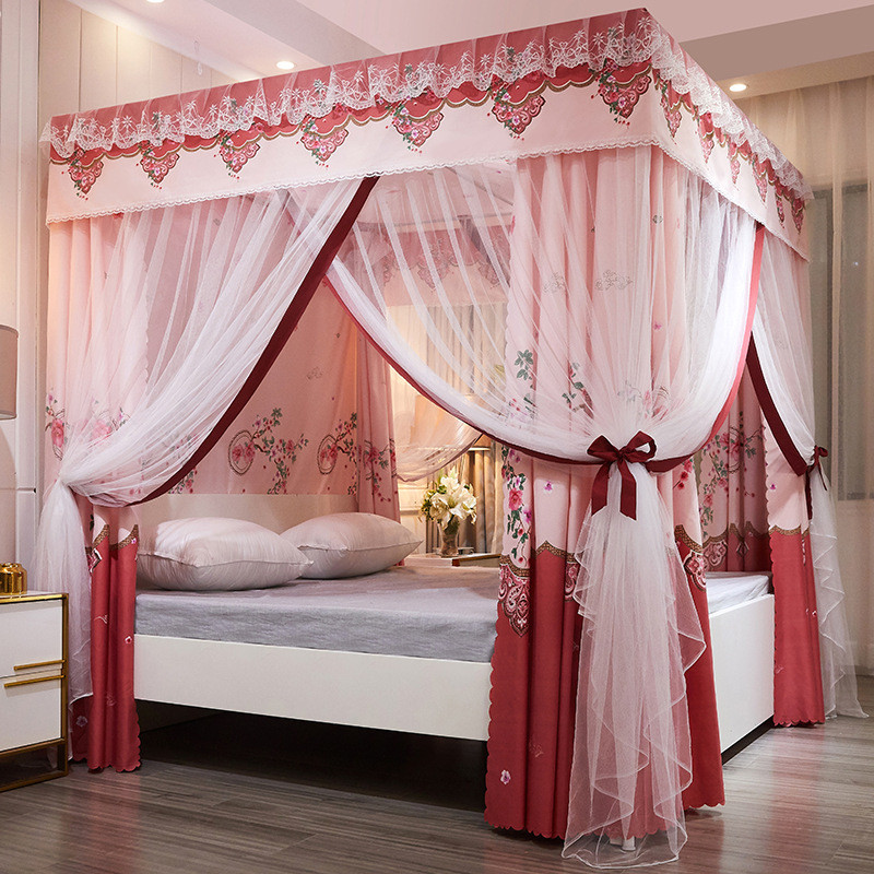 公主新款落地床帘蚊帐挡风家用遮光防尘开门一体式卧室床幔保暖