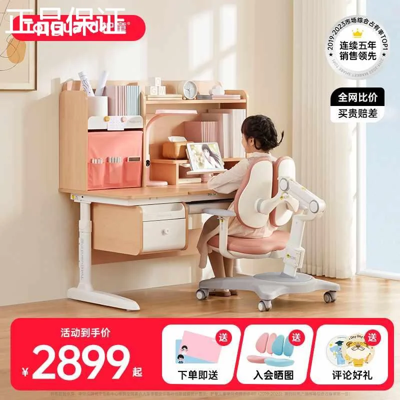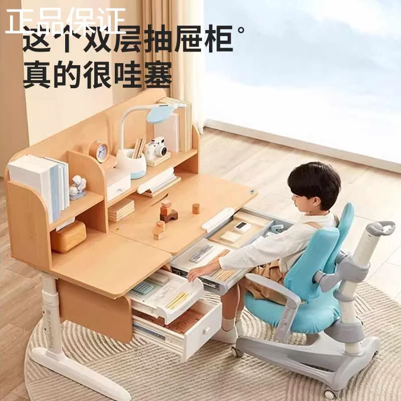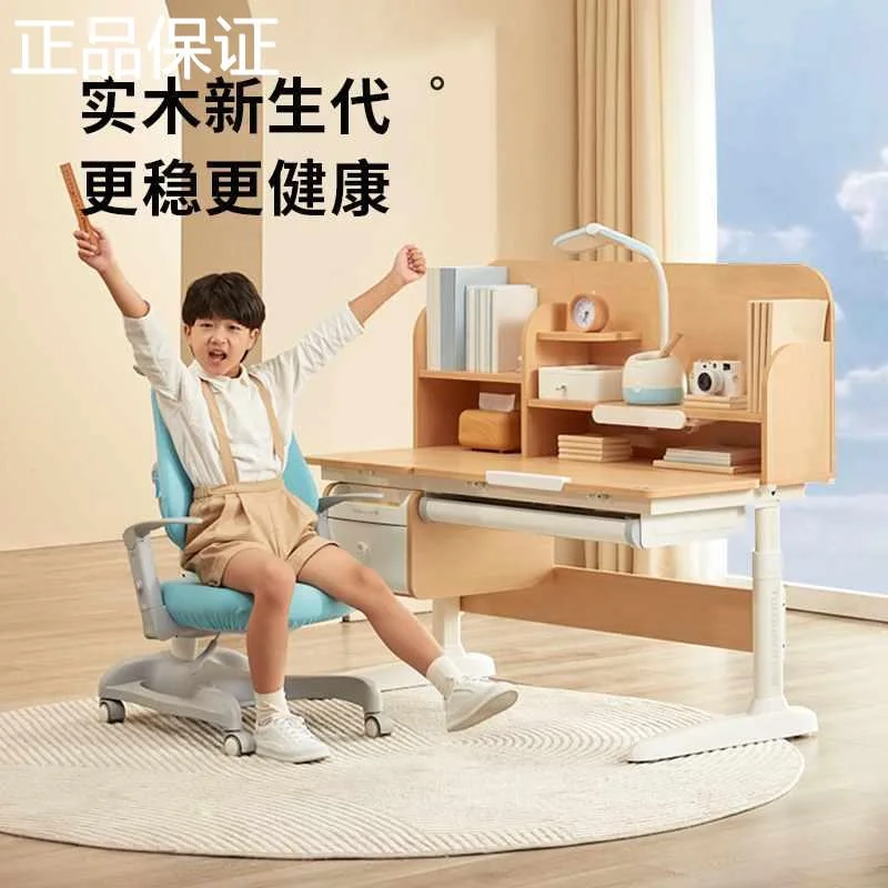 护童儿童实木学习桌可升降书小学生写家用桌字桌椅新品