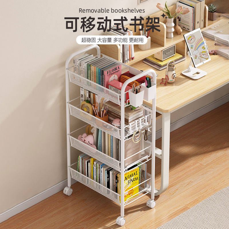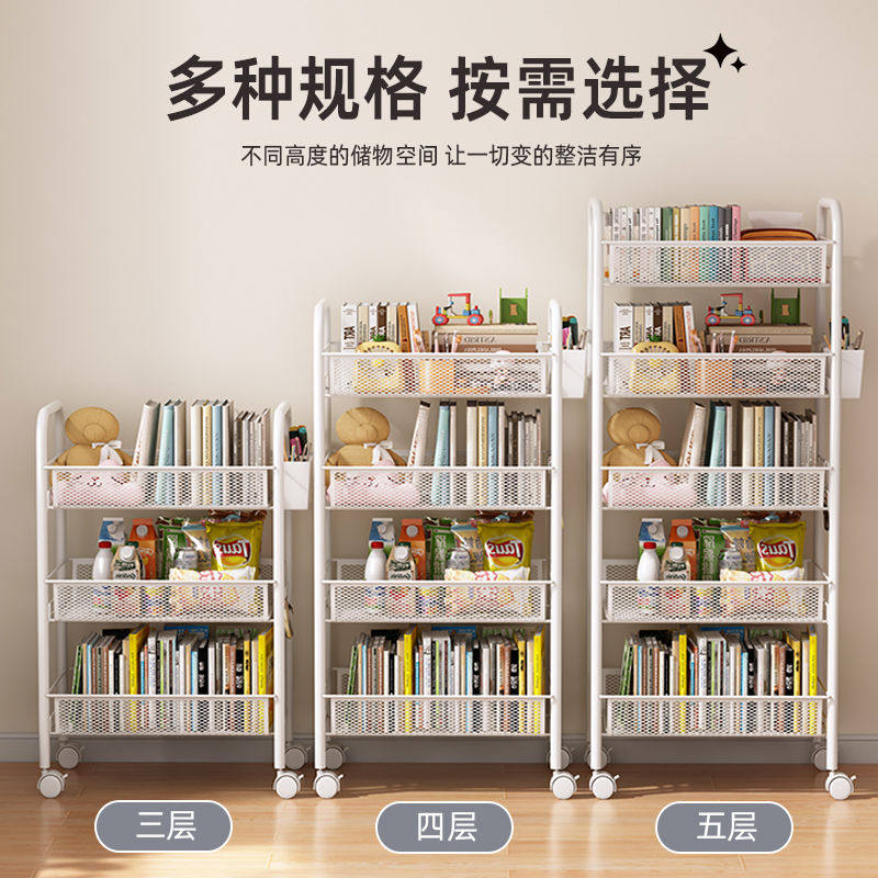 落地置物架可移动带轮书本收纳架家用整理架小推车多层零食收纳架