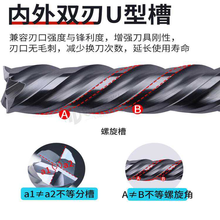 70度高效动态铣刀4刃不锈钢涂层平底合金U型槽数控开粗钨钢立铣刀