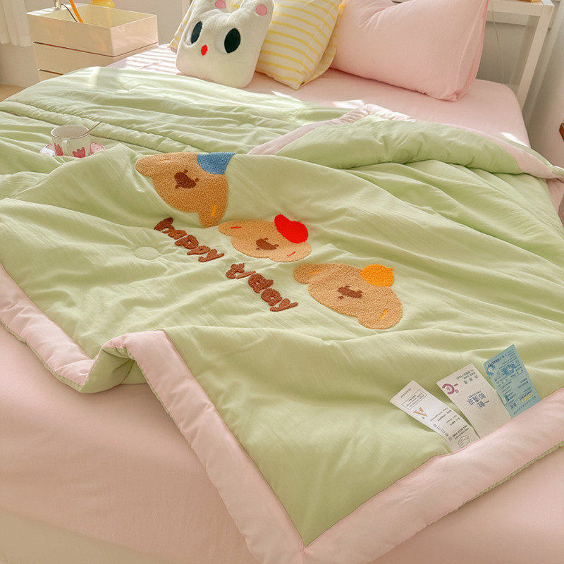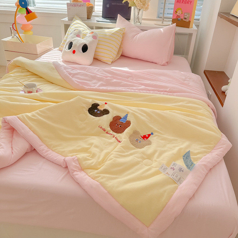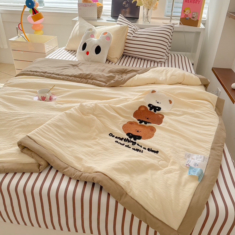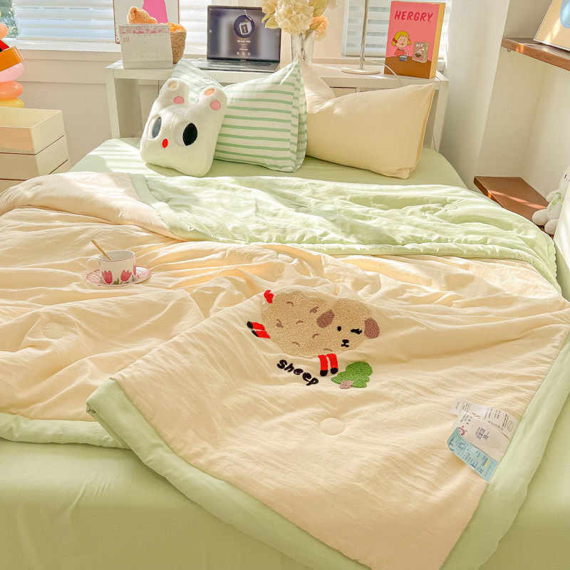 ins少女心快乐狗夏凉被水洗夏天棉云朵柔软空调薄被床单1.5四件套