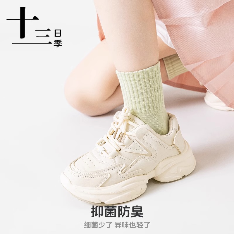 十三日季儿童运动袜春夏季纯棉防臭吸汗透气直角跟休闲运动中筒袜