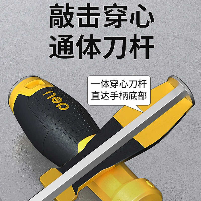 得力穿芯螺丝刀一字十字可敲击加粗镙丝批平口改锥加长起子套装