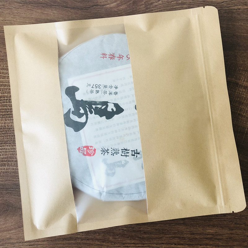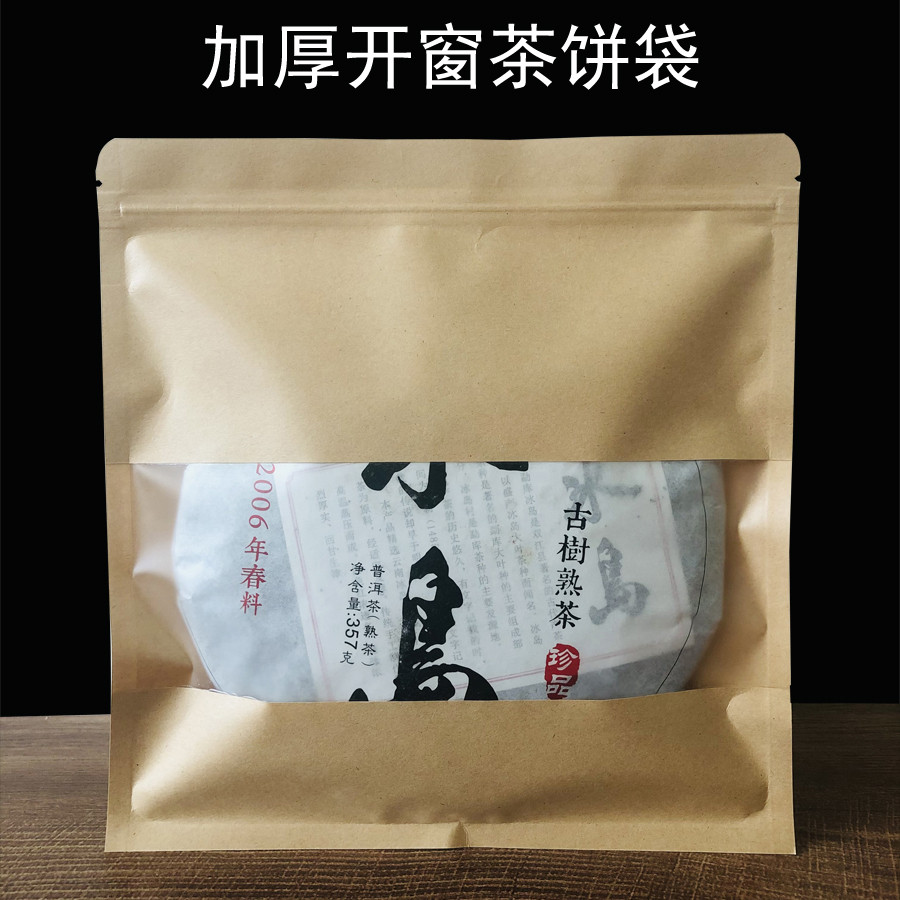 普洱茶密封袋牛皮纸加厚开窗357g茶饼保存袋子储存包装袋自封口袋