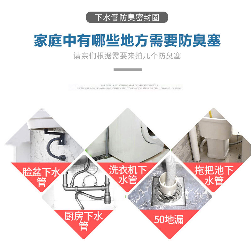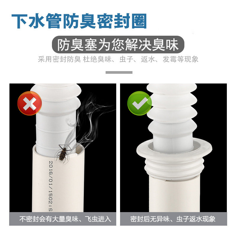 下水道防臭密封圈洗脸盆排水管厨房50/75pvc下水管地漏硅胶芯塞盖