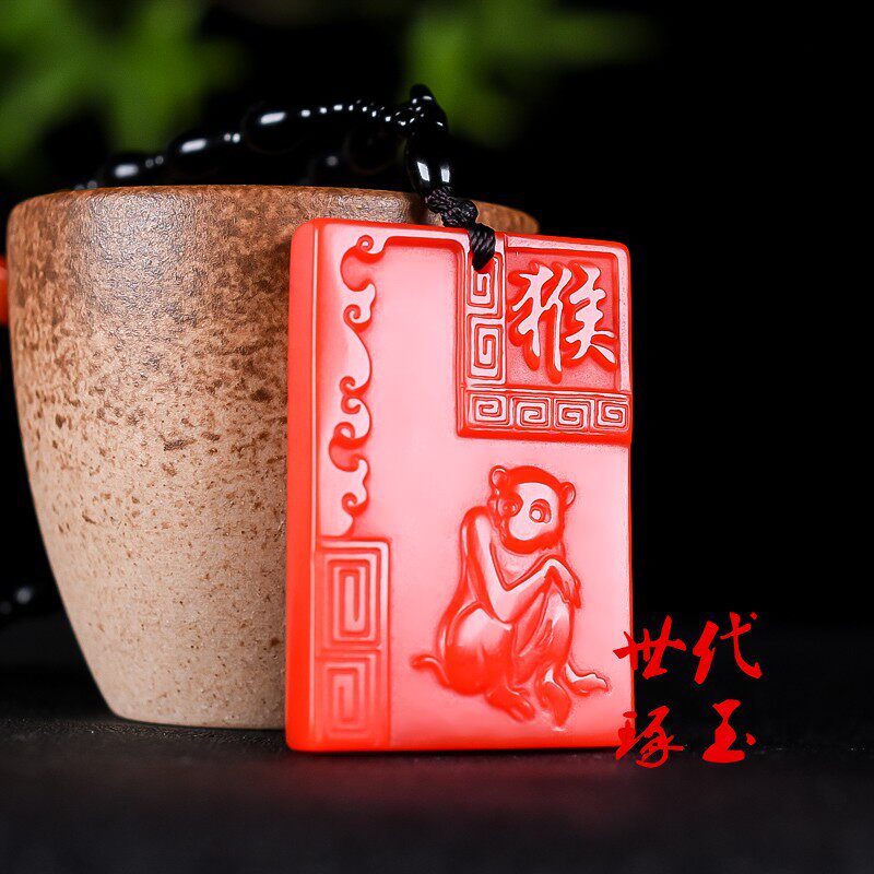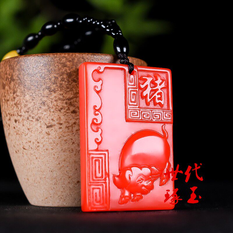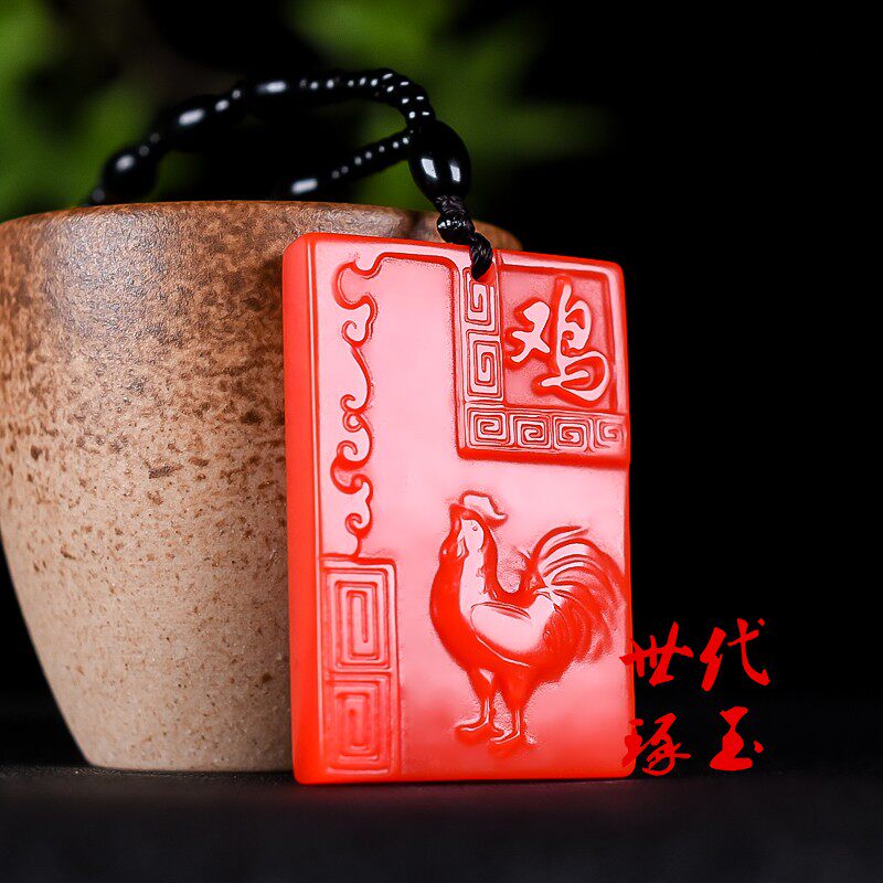 和田玉红玉十二生肖吊坠新疆鸡血石玉鼠牛虎兔龙蛇马羊鸡狗猪挂件