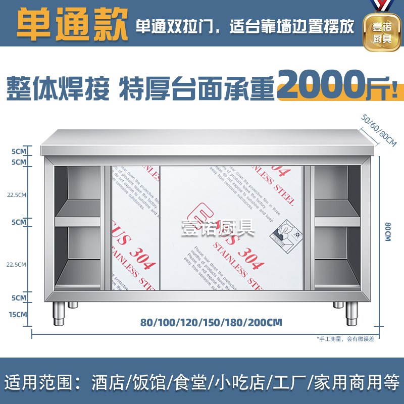 J^304不锈钢工作台厨房整体焊接橱柜打荷操作台商用酒店餐饮储物