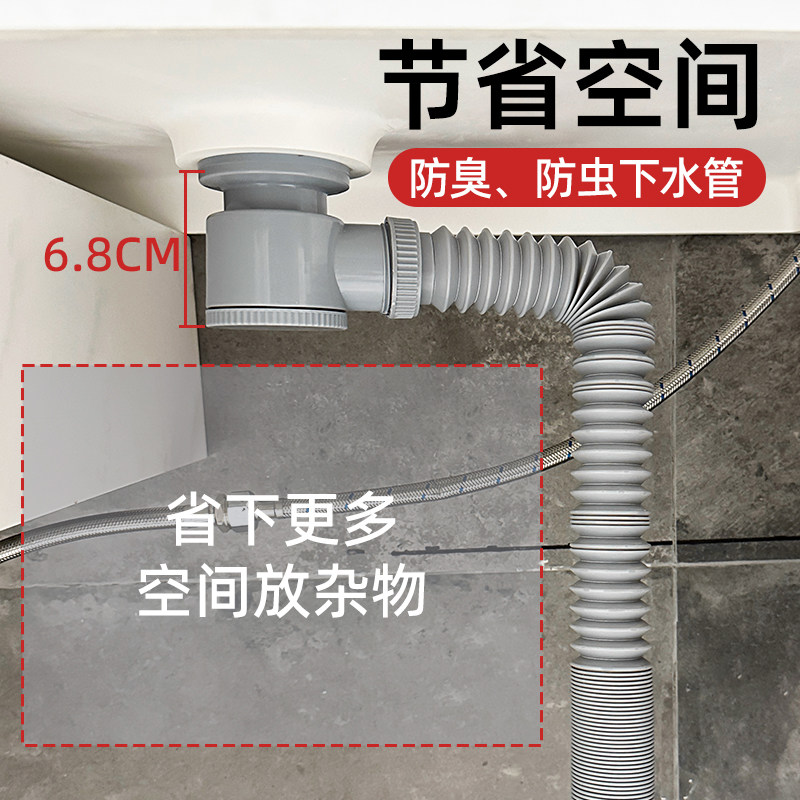 洗脸盆通用下水器矮款短墙排防臭下水塞水堵扫地机器人按弹带篮