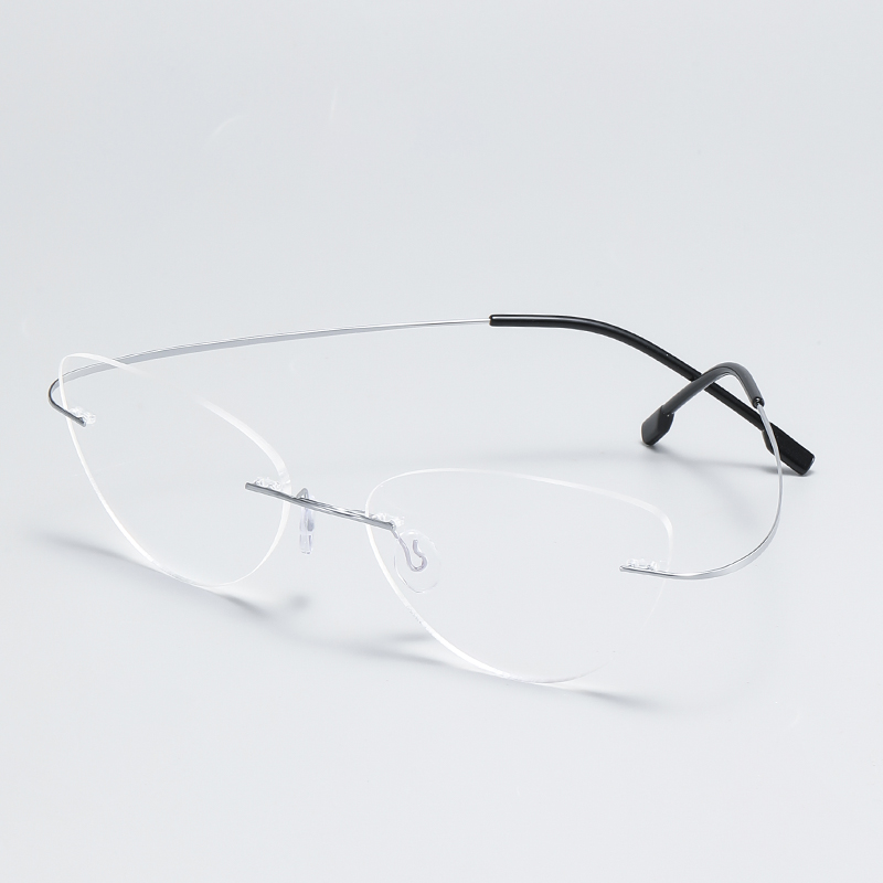 超轻猫眼无框近视眼镜框女高级感可配度数钛合金无边框金丝清冷架