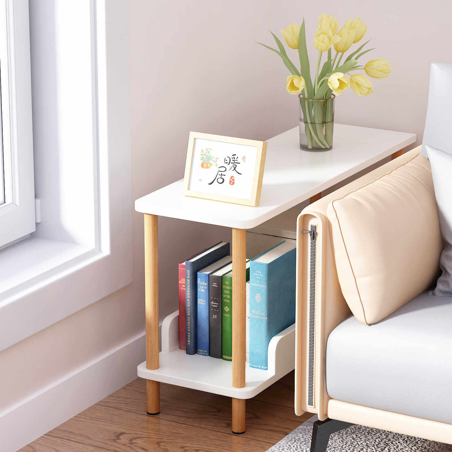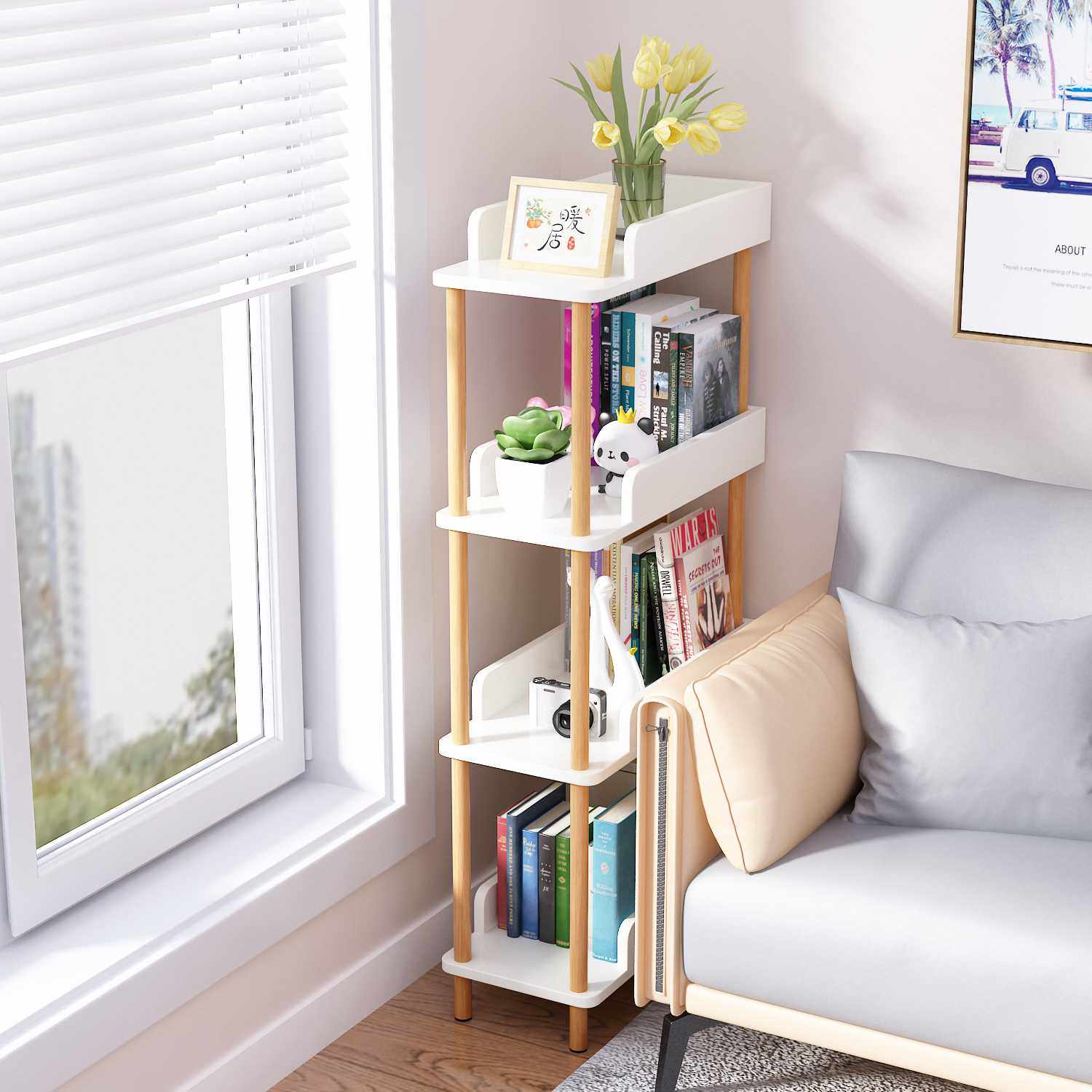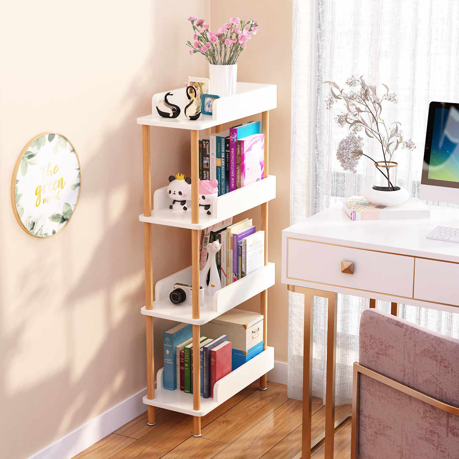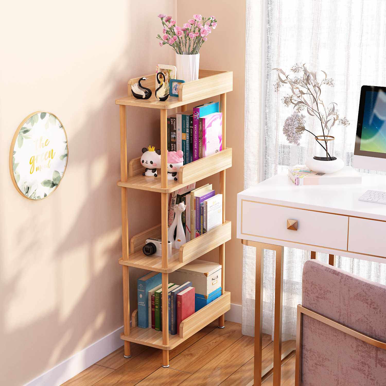 实木杆儿童书架置物架落地卧室小型收纳多层储物柜夹缝隙整理架子