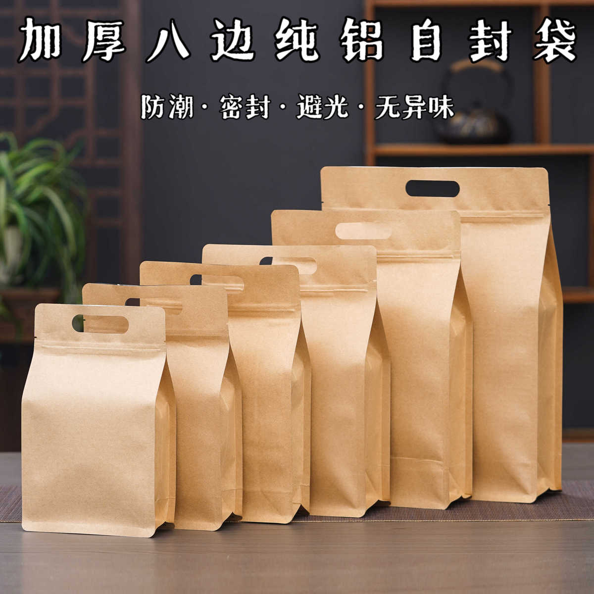 茶叶一斤半斤包装袋装散茶自封袋牛皮纸加厚密封袋红茶绿茶封新款