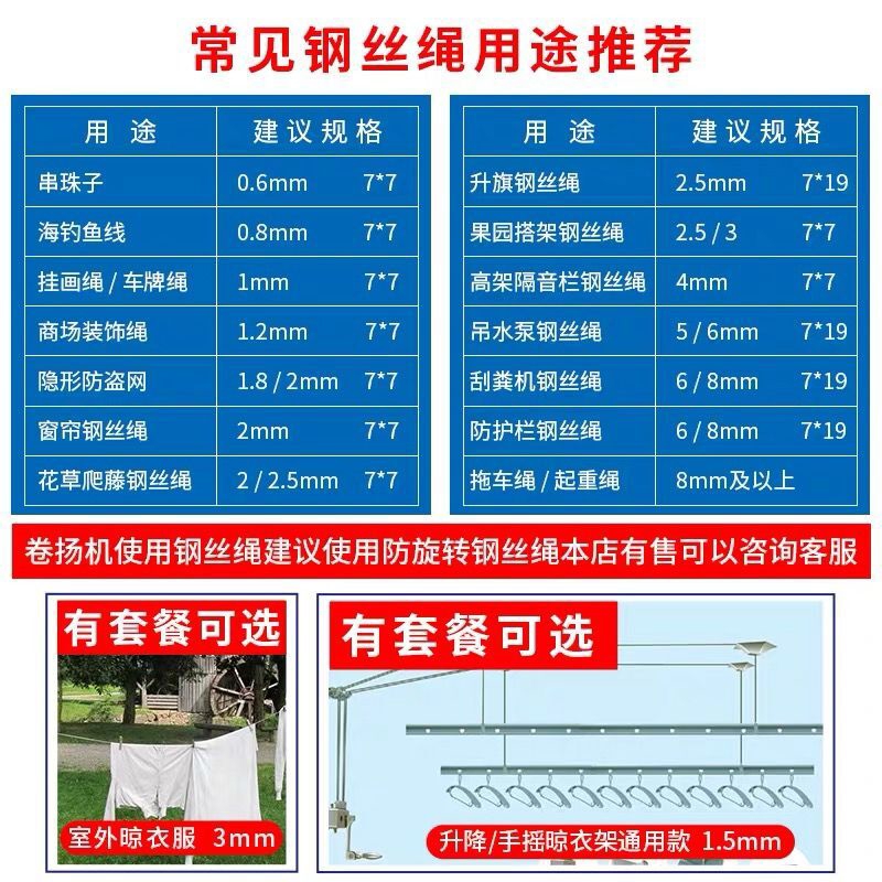 304不锈钢钢丝绳晾衣架细软钢丝绳234mm起重钢丝绳卡扣大棚葡萄架