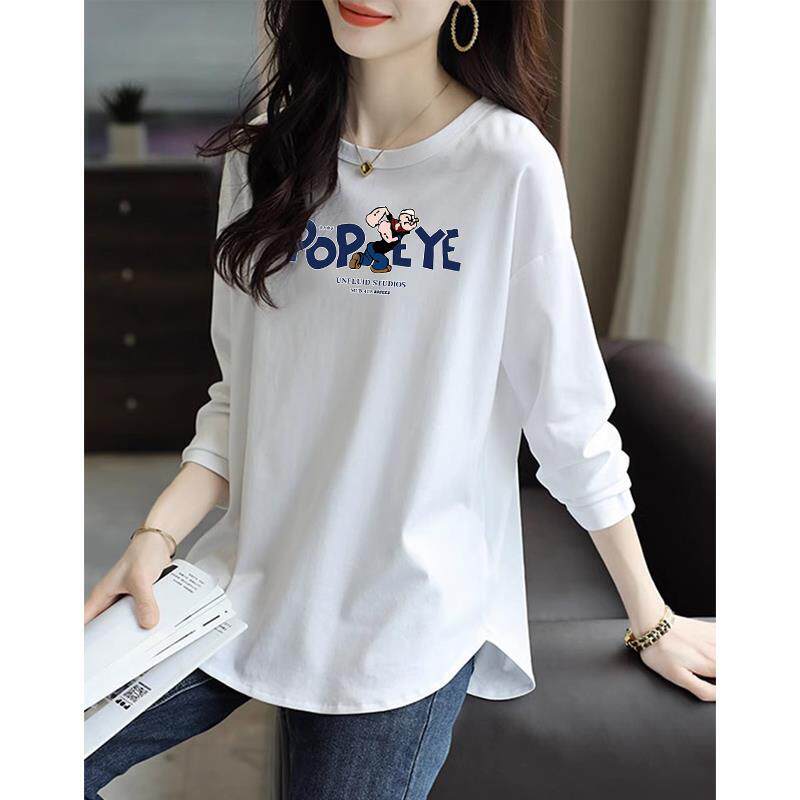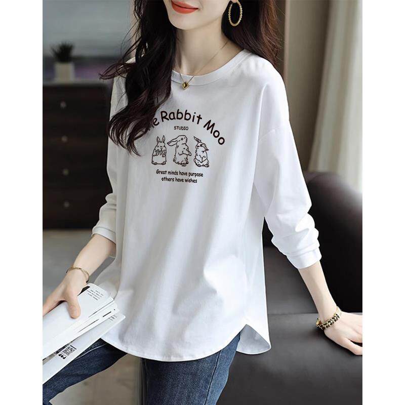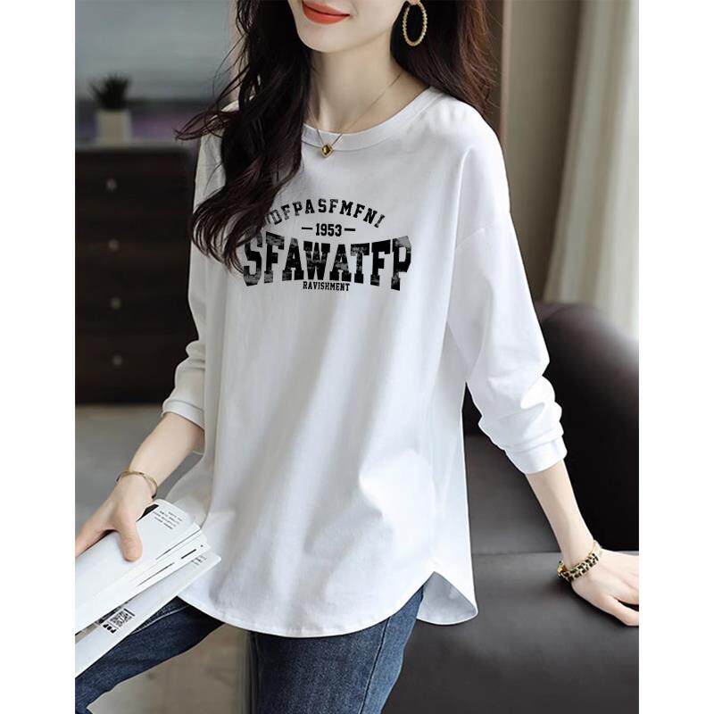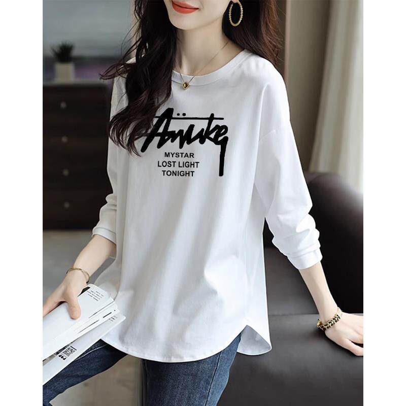 纯棉中长款遮屁股打底衫女春秋款宽松上衣不规则设计长袖T恤秋季